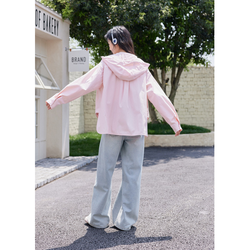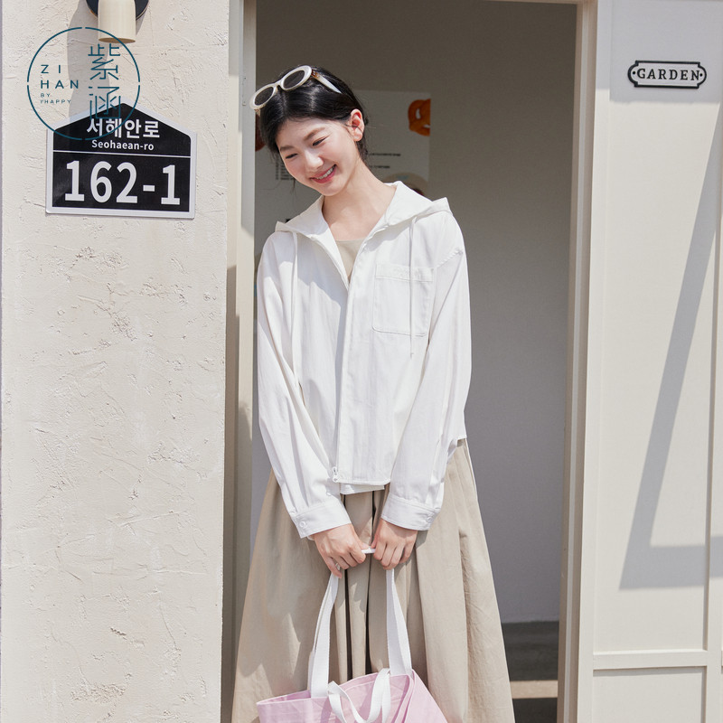 📚 紫涵连帽宽松外套女2026春季新款简约韩系通勤风松弛感拉链上衣