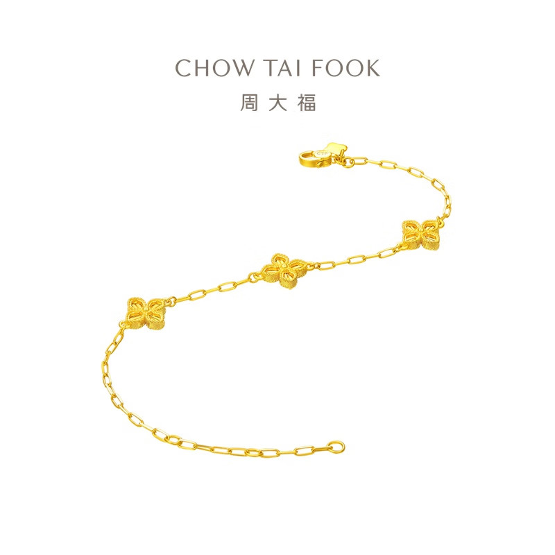 📚 周大福新款经典几何四叶草足金黄金手链女计价EOF1316