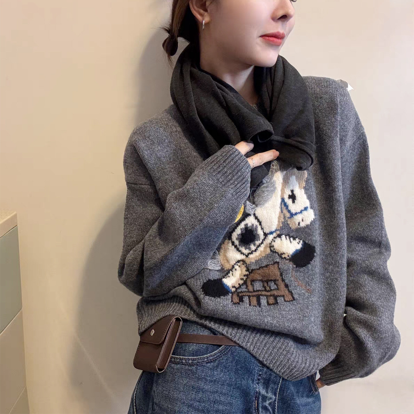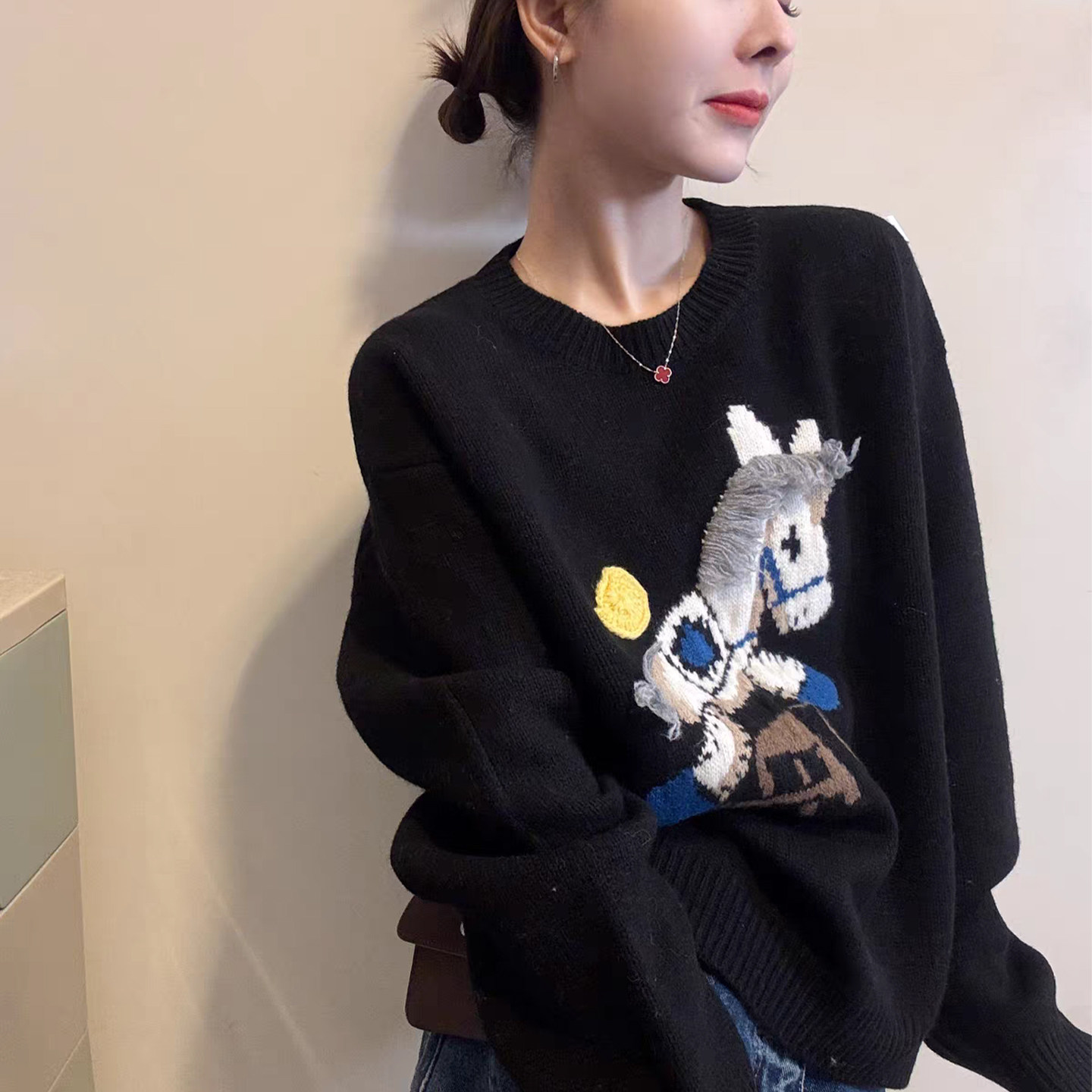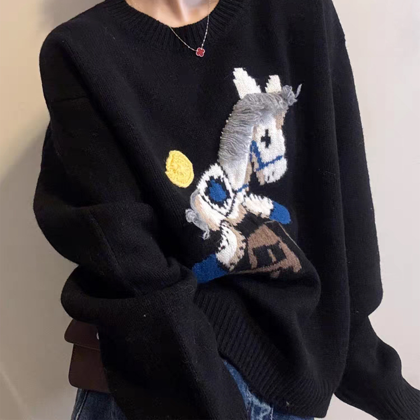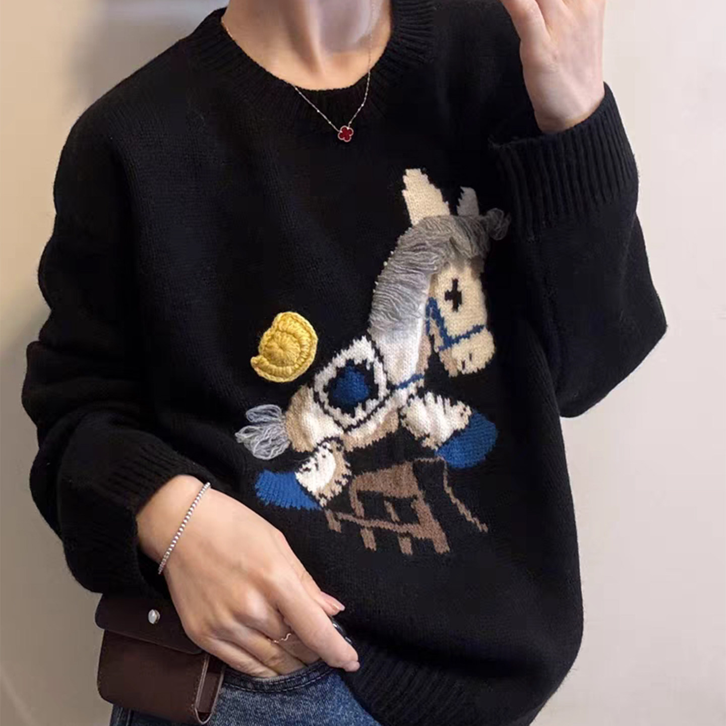 📚 十三行圣诞款小马刺绣毛衣女2025新款马上有钱内搭跨年针织衫上衣