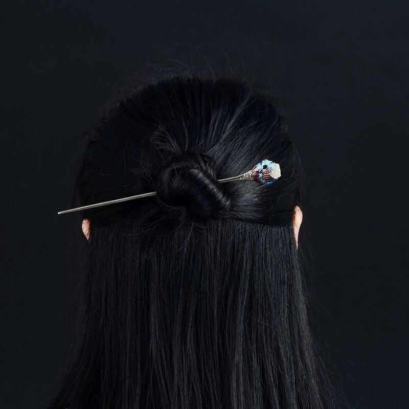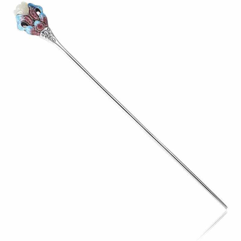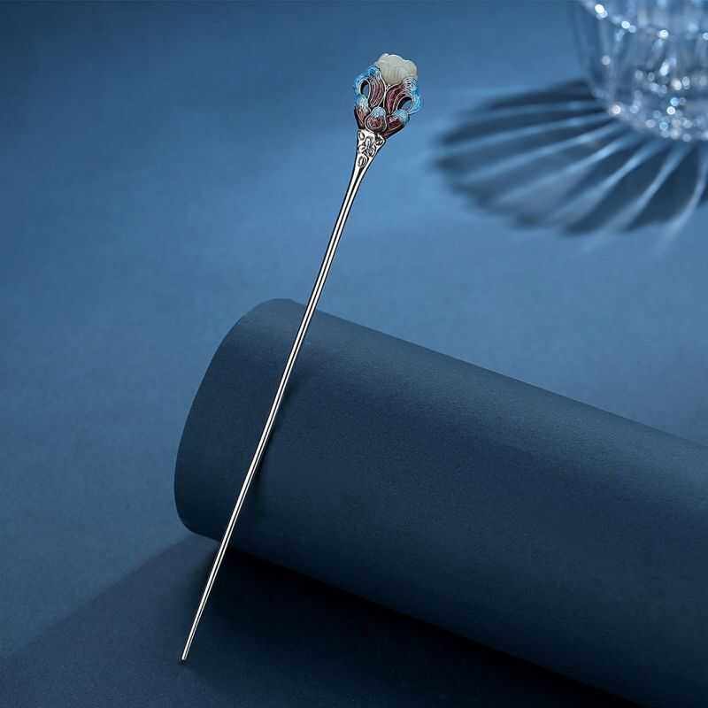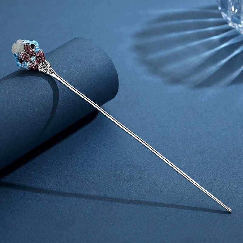 📚 新中式景泰蓝和田玉兰花发簪女镀s925银百搭简约古风簪子盘发头饰