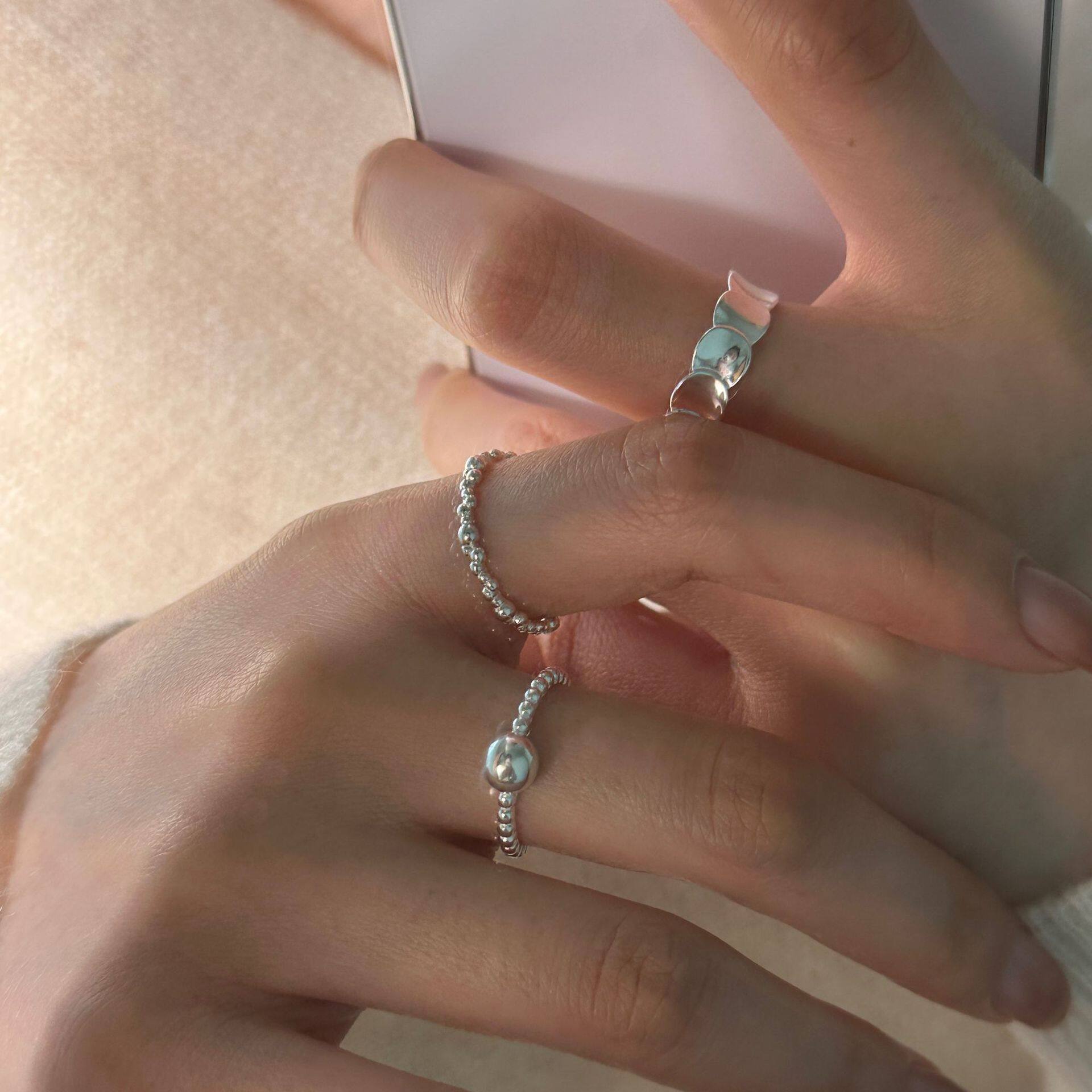 📚 梦猫饰物925通体纯银圆珠叠戴戒指女简约韩国ins风百搭组合可调节