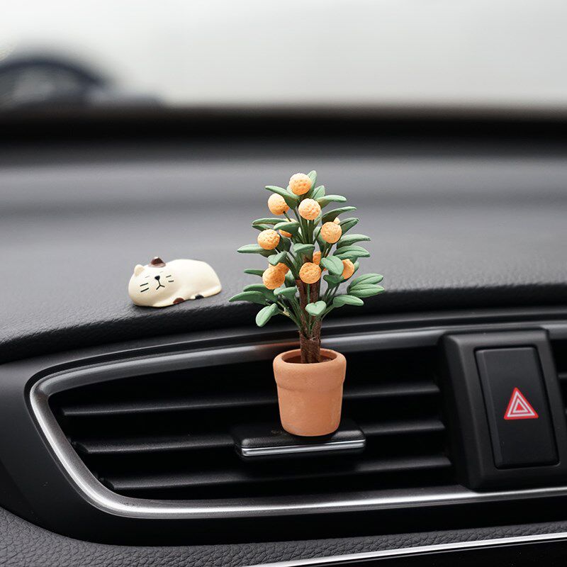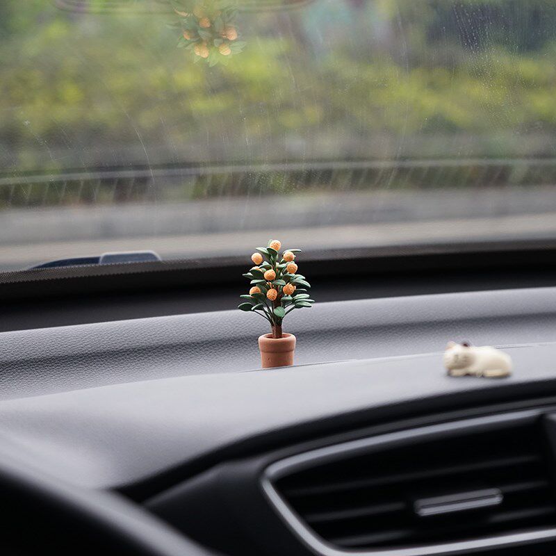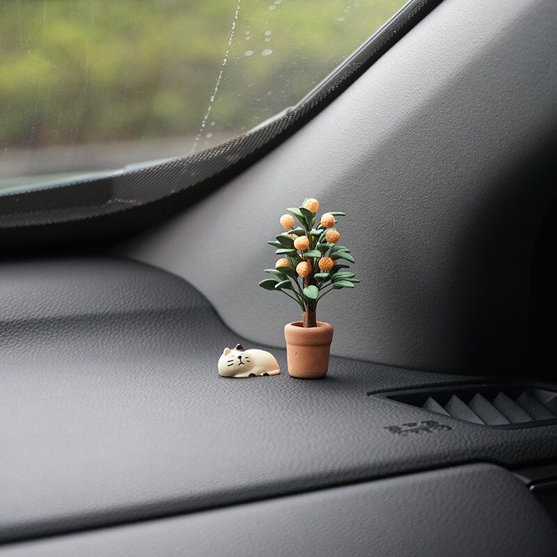 📚 平安大吉橘树迷你汽车小摆件手工陶土花盆创意车载装饰品新车礼物