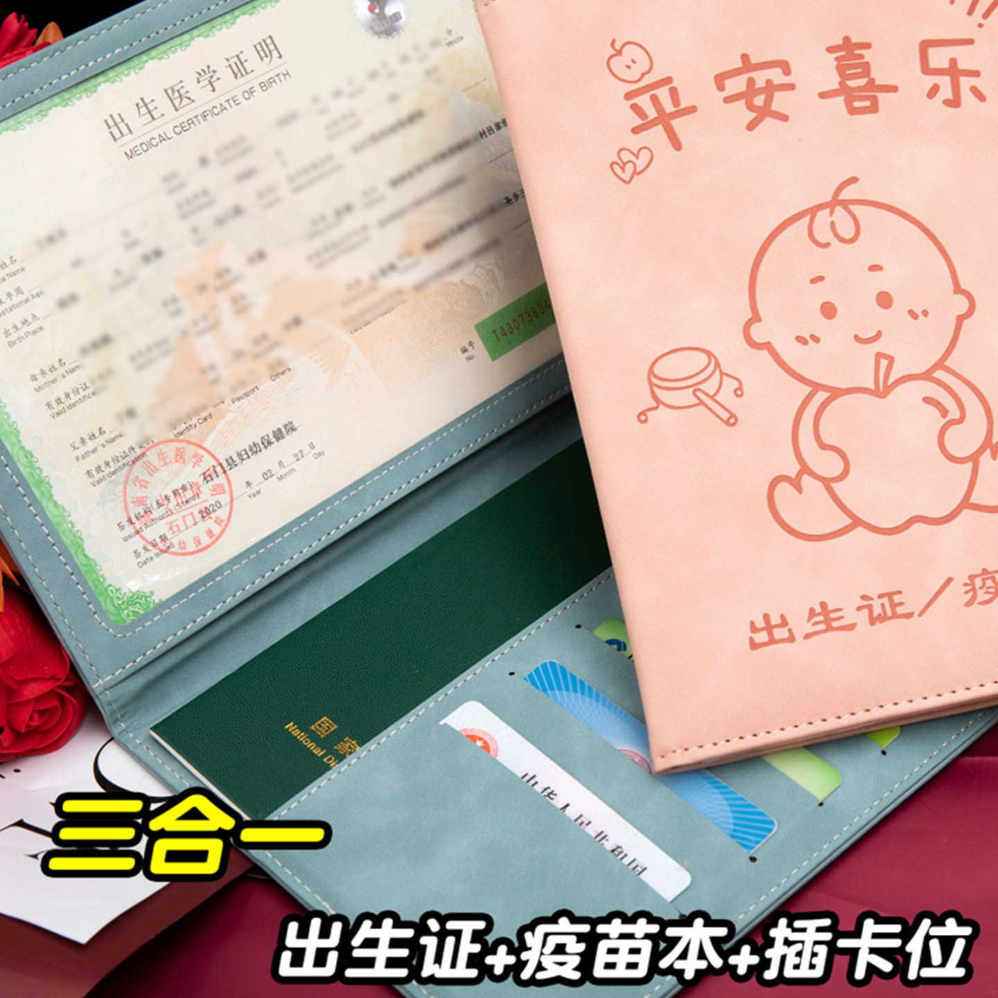 📚 2025新版三合一出生证和疫苗本保护套新生婴儿男女宝宝出生证明保护壳预防针接种证不粘字全国通用可放两张