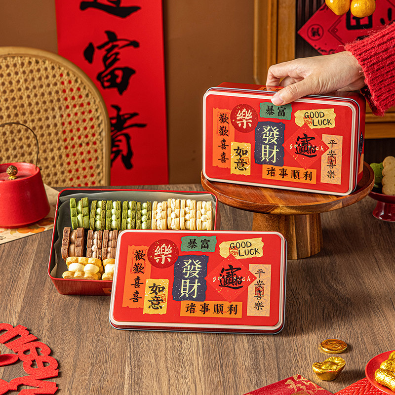 📚 新年饼干包装盒马年开窗铁盒糖果曲奇空盒子太妃糖雪花酥烘焙礼盒