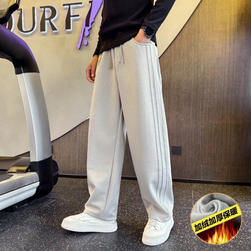 📚 男士卫裤秋冬加绒裤子男款2025新S码宽松直筒长裤休闲运动弯刀裤