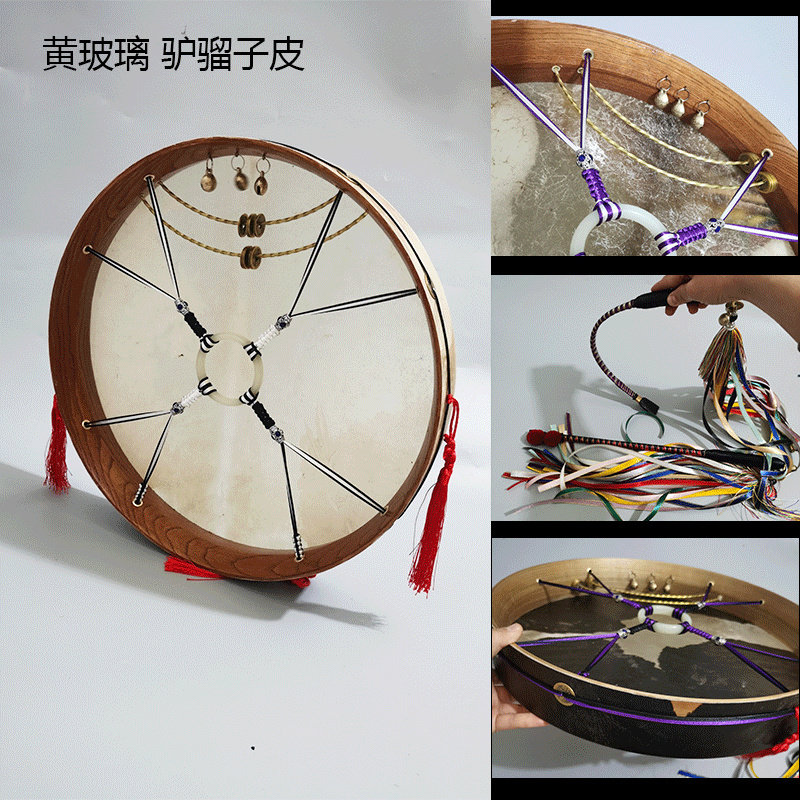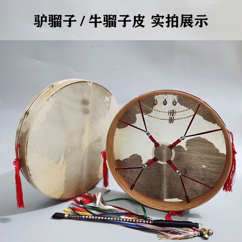📚 柳木圈驴皮鼓二神鼓文王鼓镇堂鼓牛溜子皮单面手抓鼓藤条鼓鞭送包