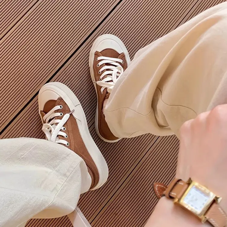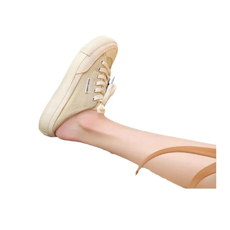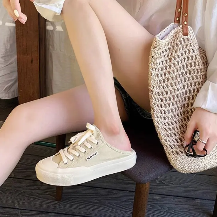 📚 葡萄妈studio小圆头可踩跟系带低帮休闲风帆布鞋女夏2024新款