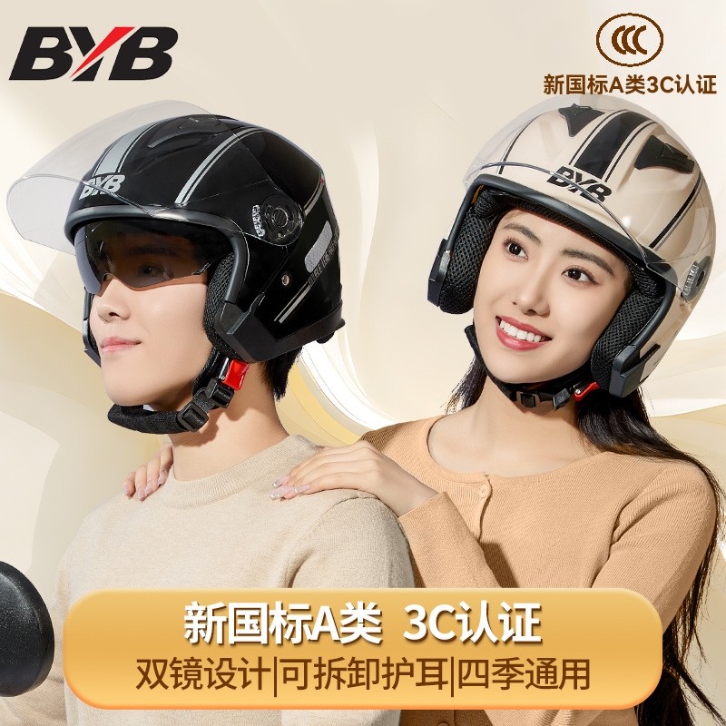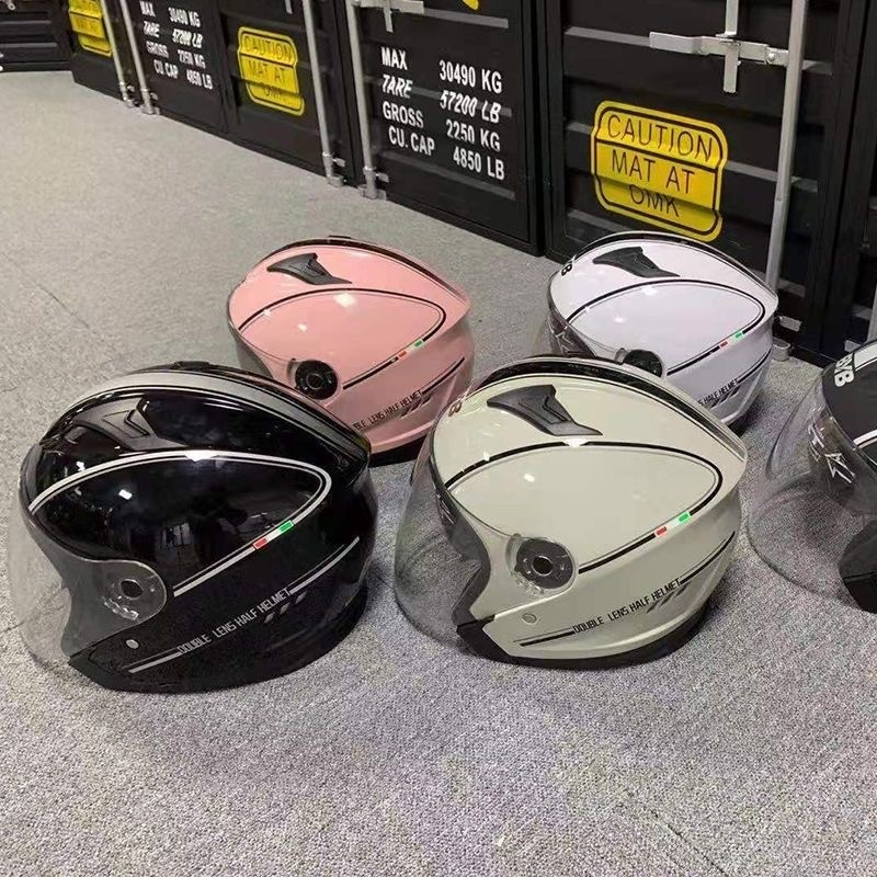 📚 电动车精装奶茶色布丁狗&大耳狗复古电动摩托车头盔男女保暖冬季