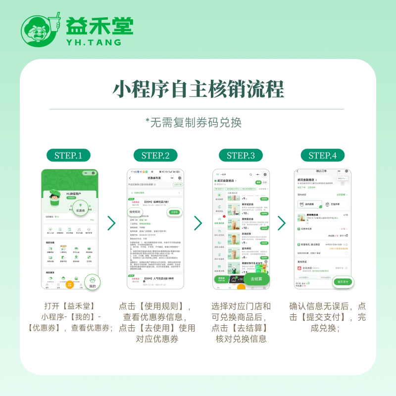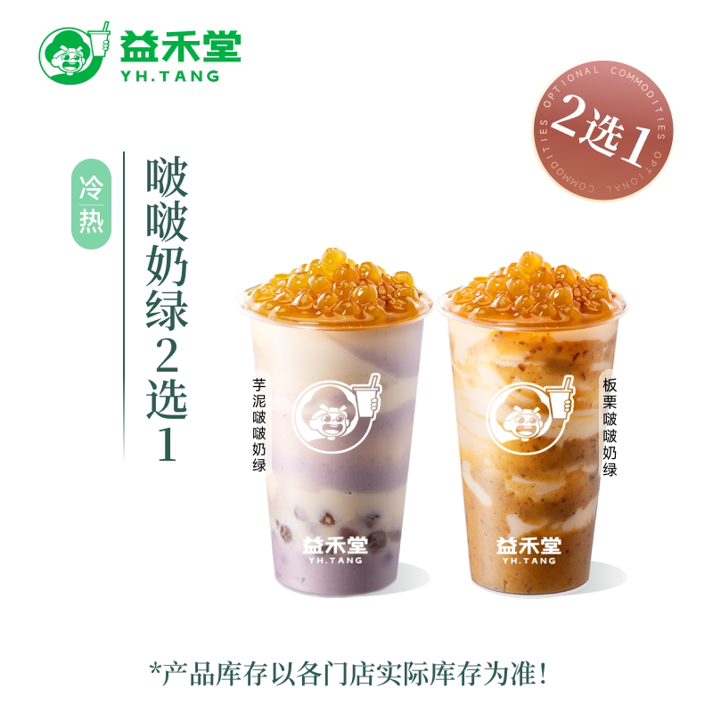 📚 益禾堂 啵啵奶绿2选1 中杯 奶茶团购优惠券 小程序到店自提使用