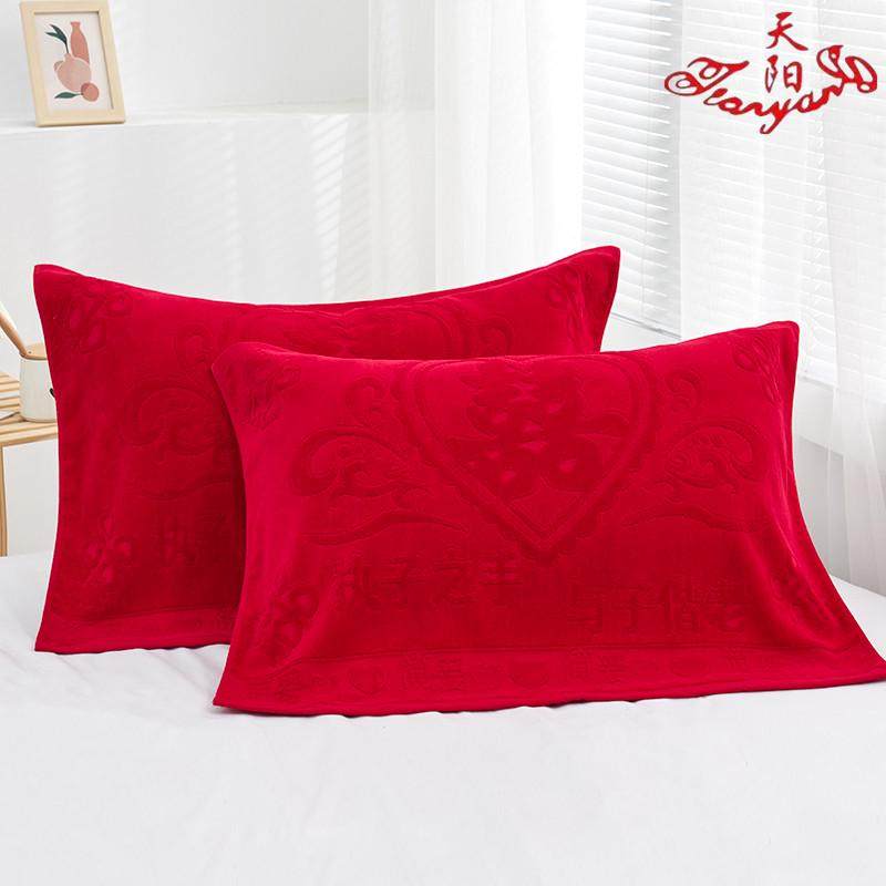 📚 天阳加大强割绒结婚枕巾纯棉一对装加厚大红提花喜字情侣婚庆陪嫁