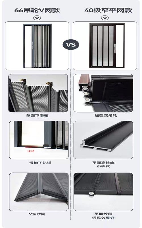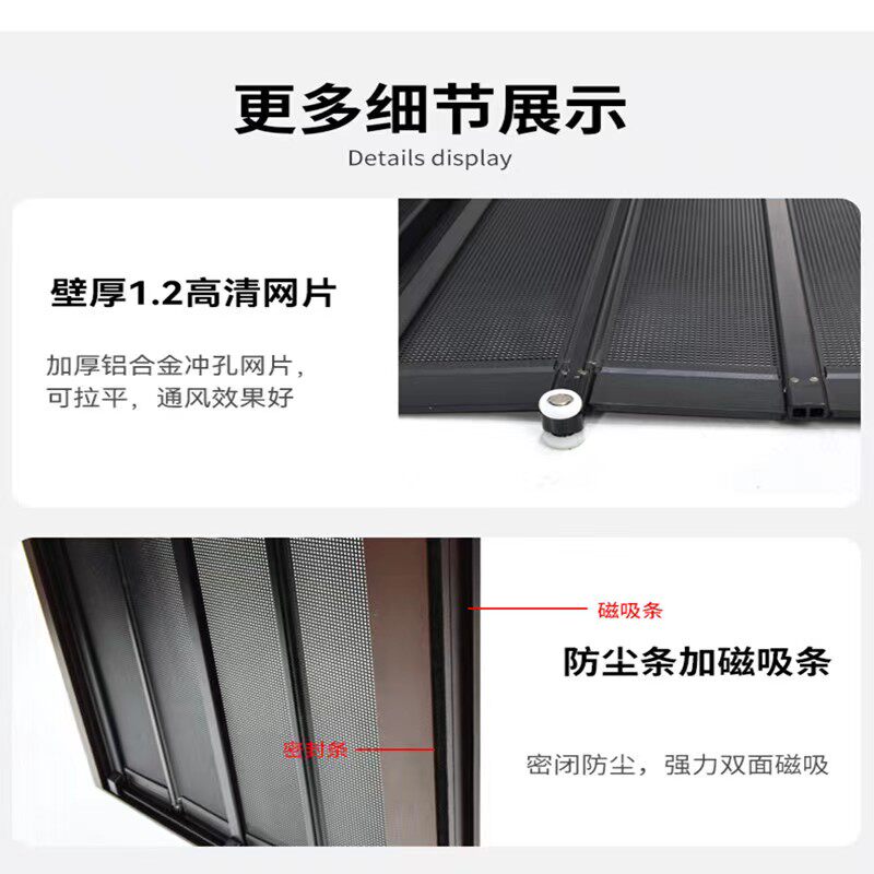 📚 金刚网折叠高铁轨纱门平网防猫狗防老鼠防盗极窄铝合金推拉沙门