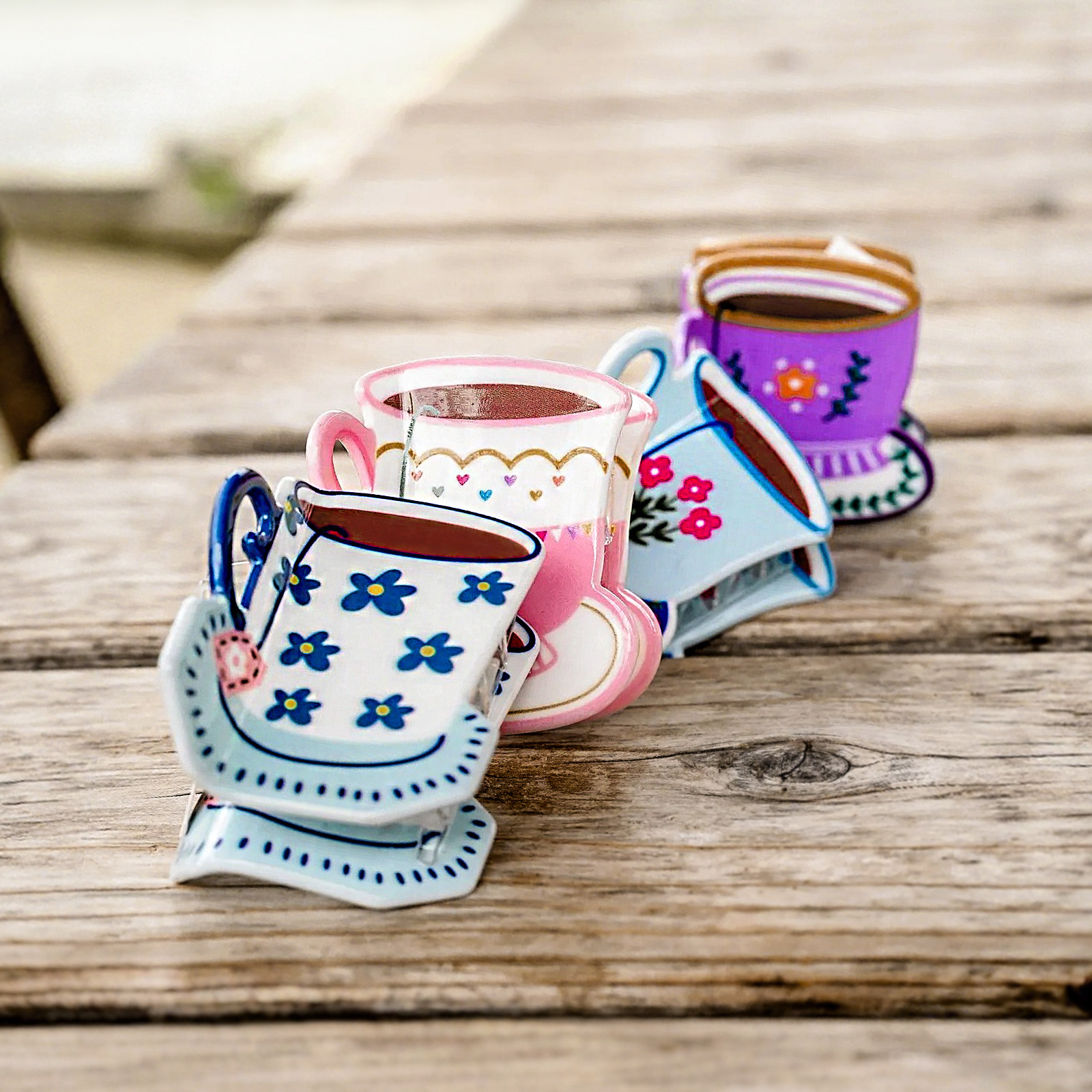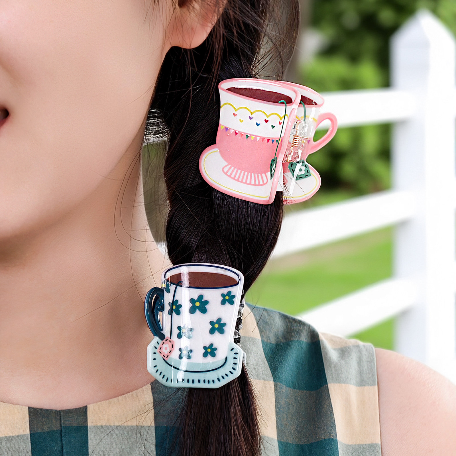 📚 OSEWAYA抓夹可爱少女儿童发饰法式下午茶杯具鲨鱼夹精致迷你发卡