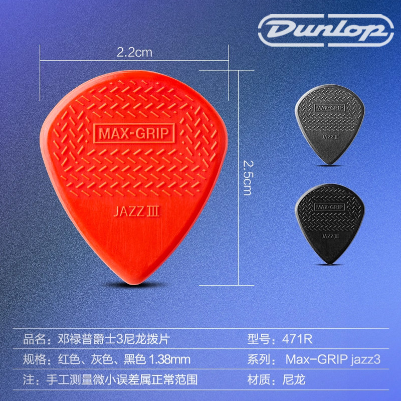 📚 Dunlop邓禄普 471R防滑/大号/标准尼龙爵士电吉他拨片速弹片1.38
