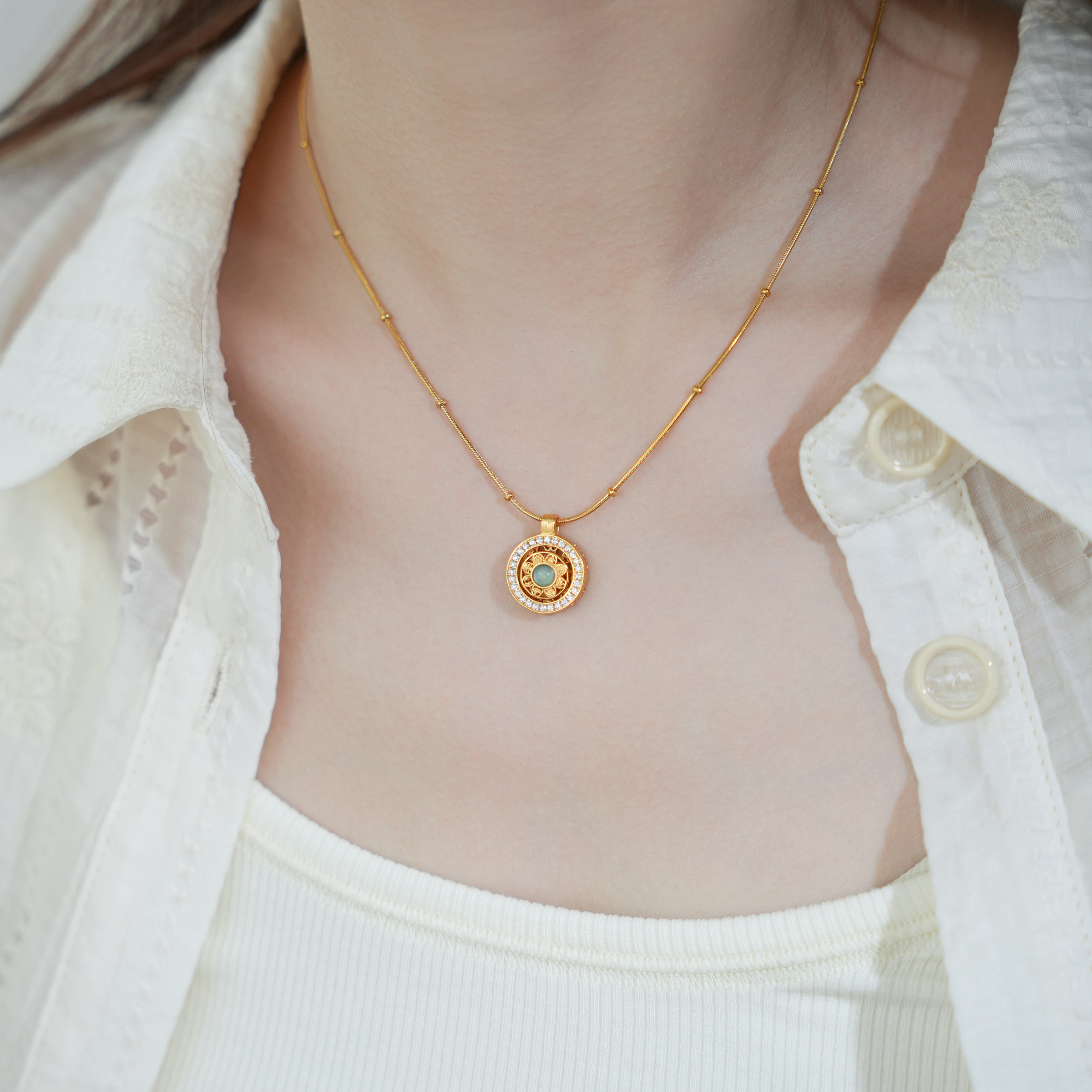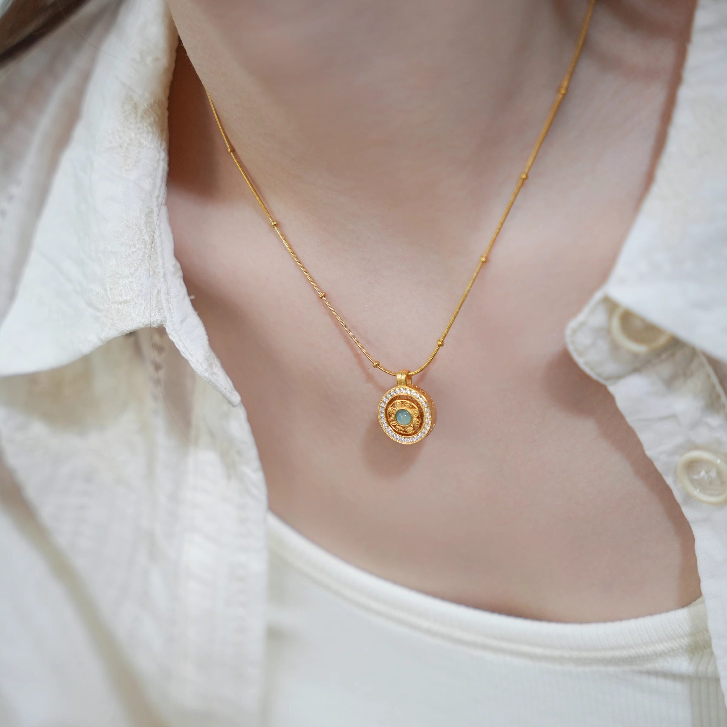 ✨无论是送给亲朋好友还是自己佩戴,这款QIANTAO「寻真」原创八宝罗盘蓝水翡翠项链都是个不错的选择。每次佩戴它,都会让人感受到满满的正能量和好运。