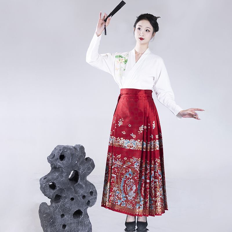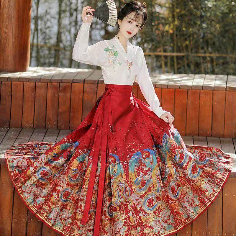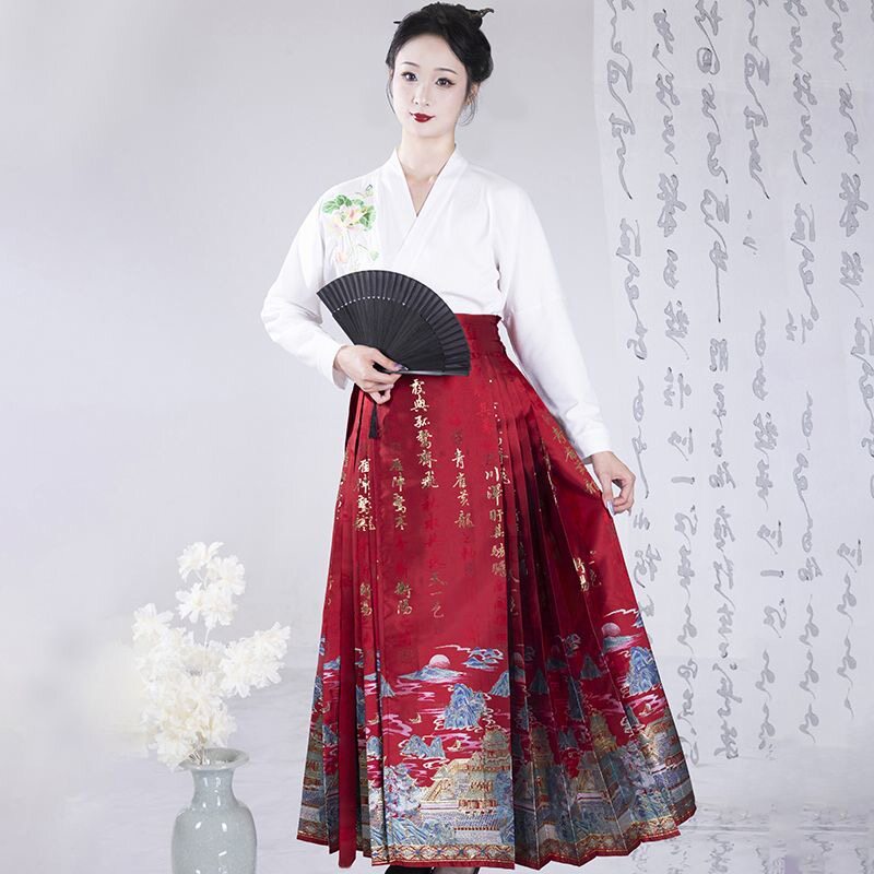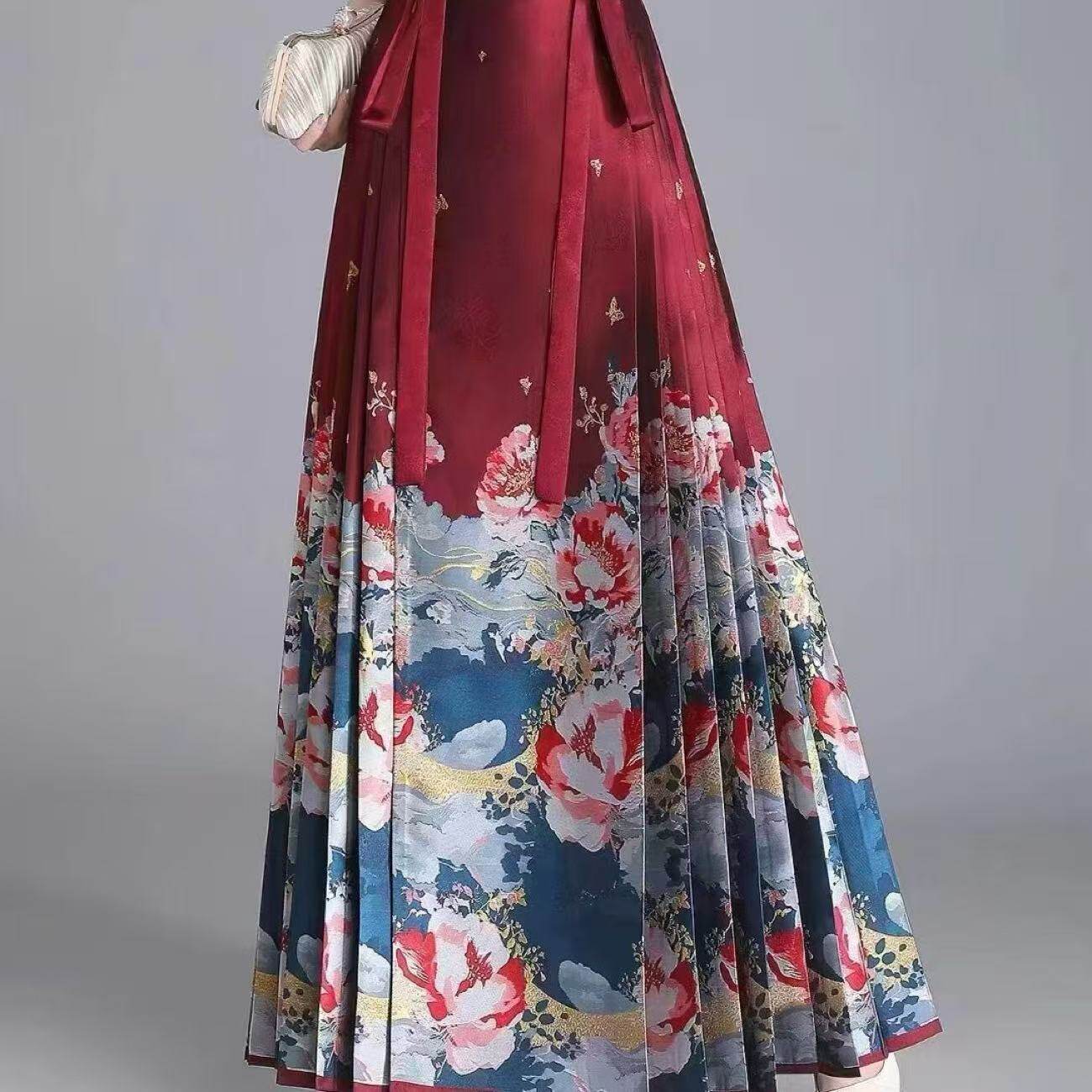 📚 原创马面裙清仓明制织金仿妆花订婚红色女日常通勤半身裙国风汉服