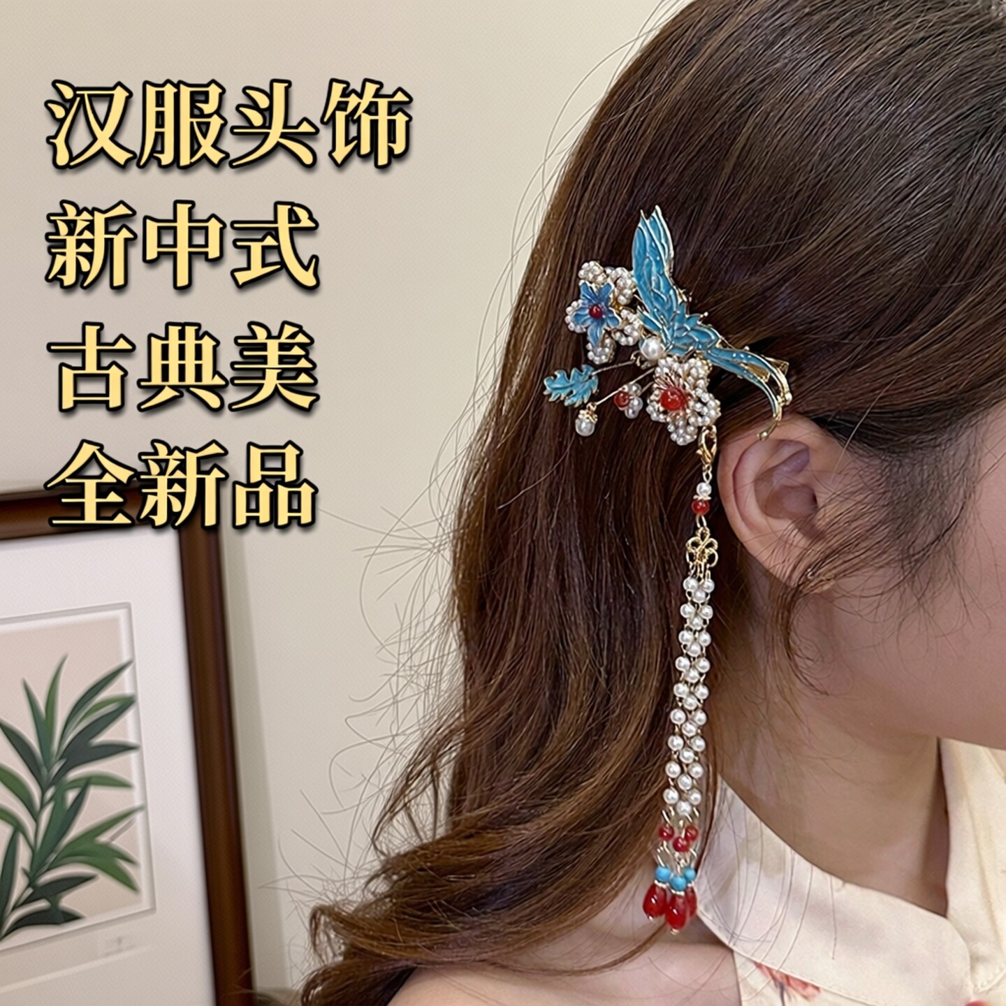 📚 汉服头饰步摇流苏古典烧蓝新中式马面裙结婚发饰侧边夹旗袍发饰女