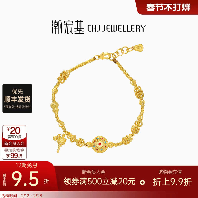 📚 潮宏基臻金八宝罗盘黄金手链足金古法盘缠金女新中式新年礼物 卟
