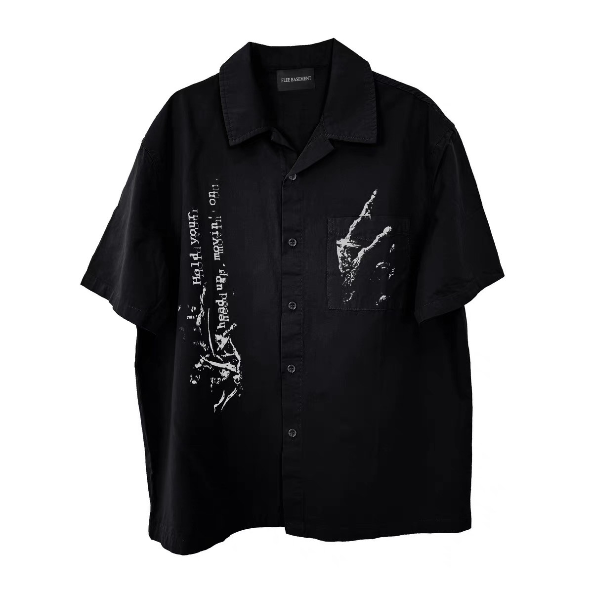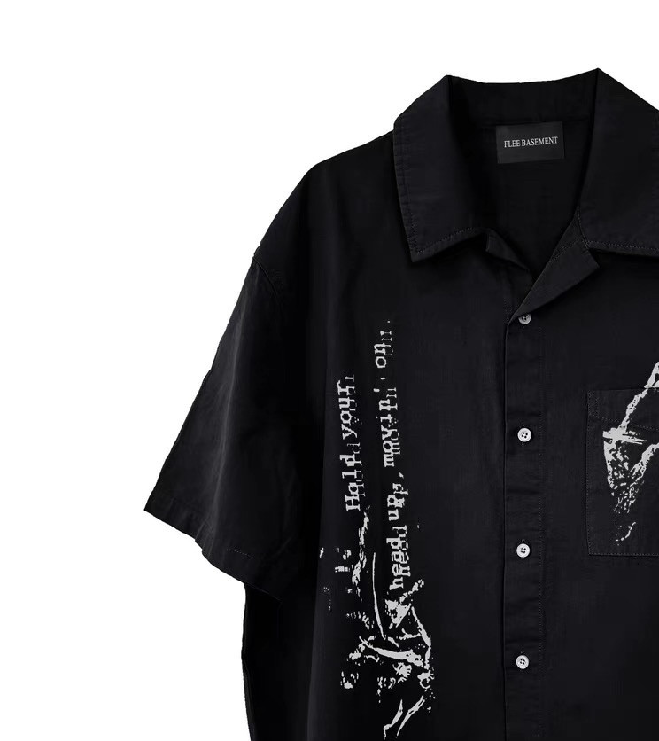 📚 FLEE BASEMENT 夏季复古字母印花休闲百搭宽松古巴领短袖衬衫男女