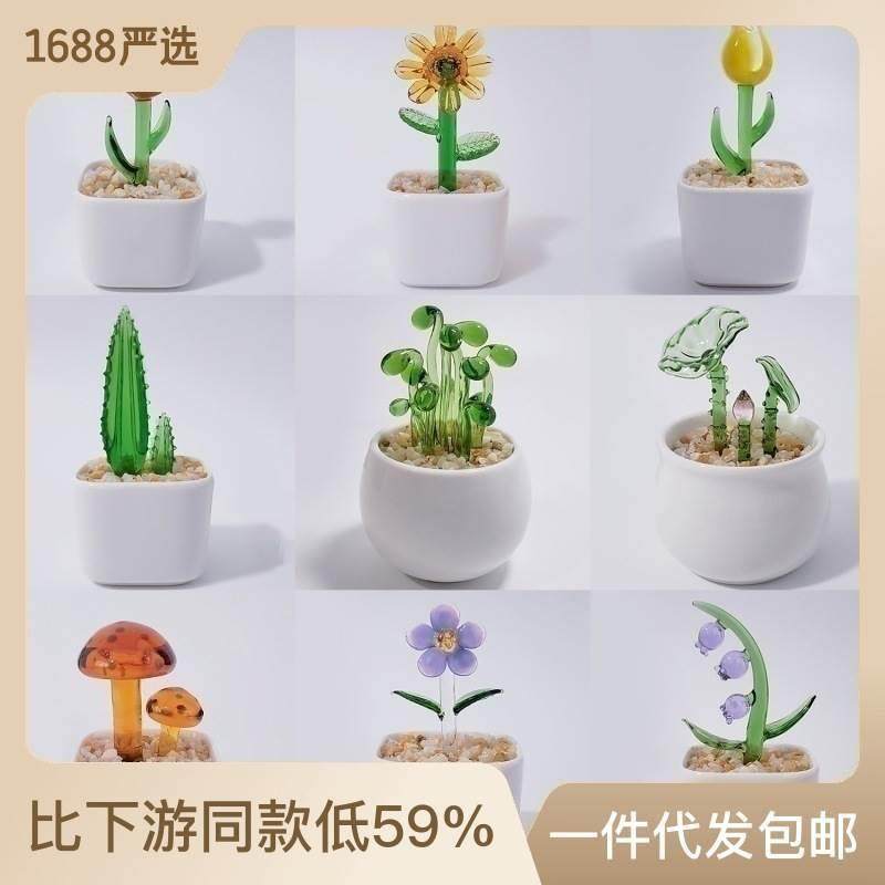 📚 山东淄博博山琉璃玻璃小摆件多肉盆栽装饰品陶瓷办公桌装饰仙人掌