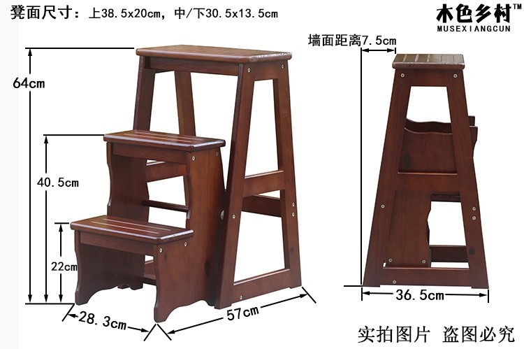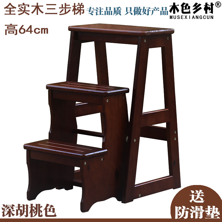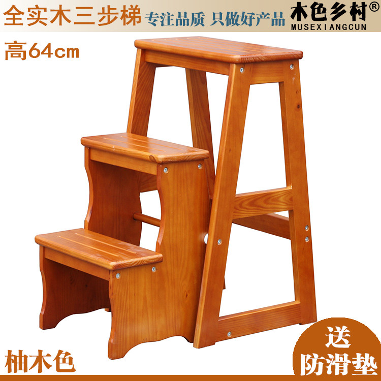 📚 正品包邮加厚实木折叠梯凳 室内两用梯椅 三步木梯子 家用爬高凳