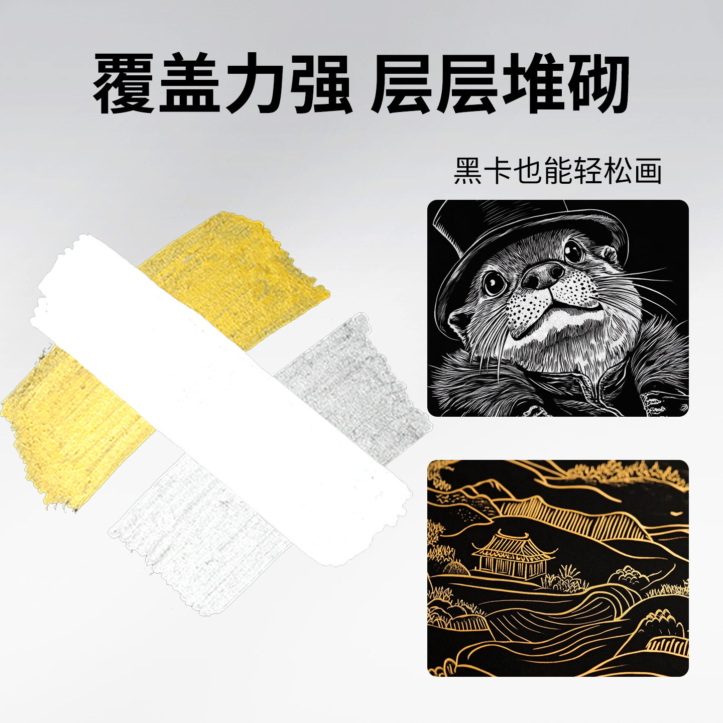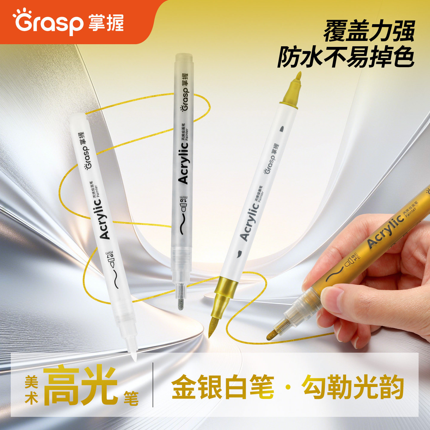 📚 掌握白色高光笔丙烯双头马克笔绘画高光白笔防水不易掉色学生提亮专用勾线笔美术涂鸦黑卡手账银色金色记号笔