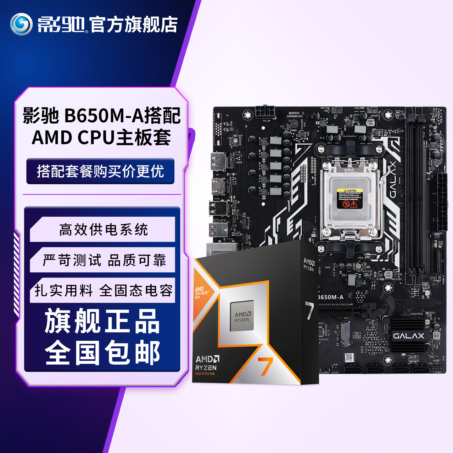 📚 影驰B650M搭7500F/9600X/9700X/7800X3D/9800X3D电脑CPU板U套装