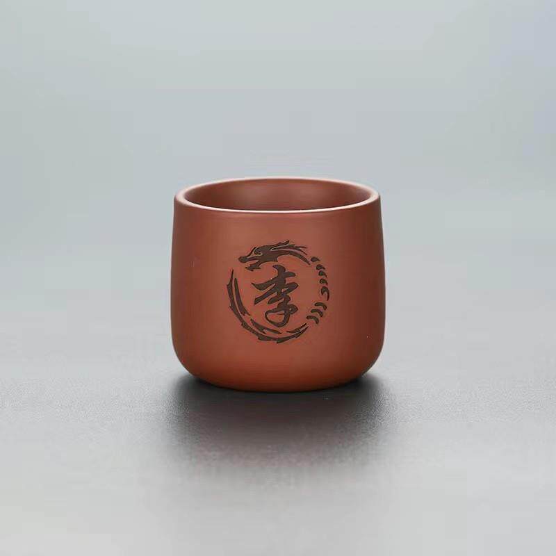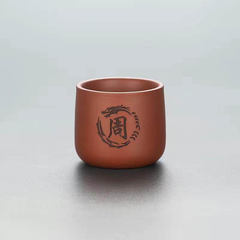 📚 朱红泥茶杯功夫小茶杯40ml品茗杯紫砂茶具定制LOGO企业雕刻文字