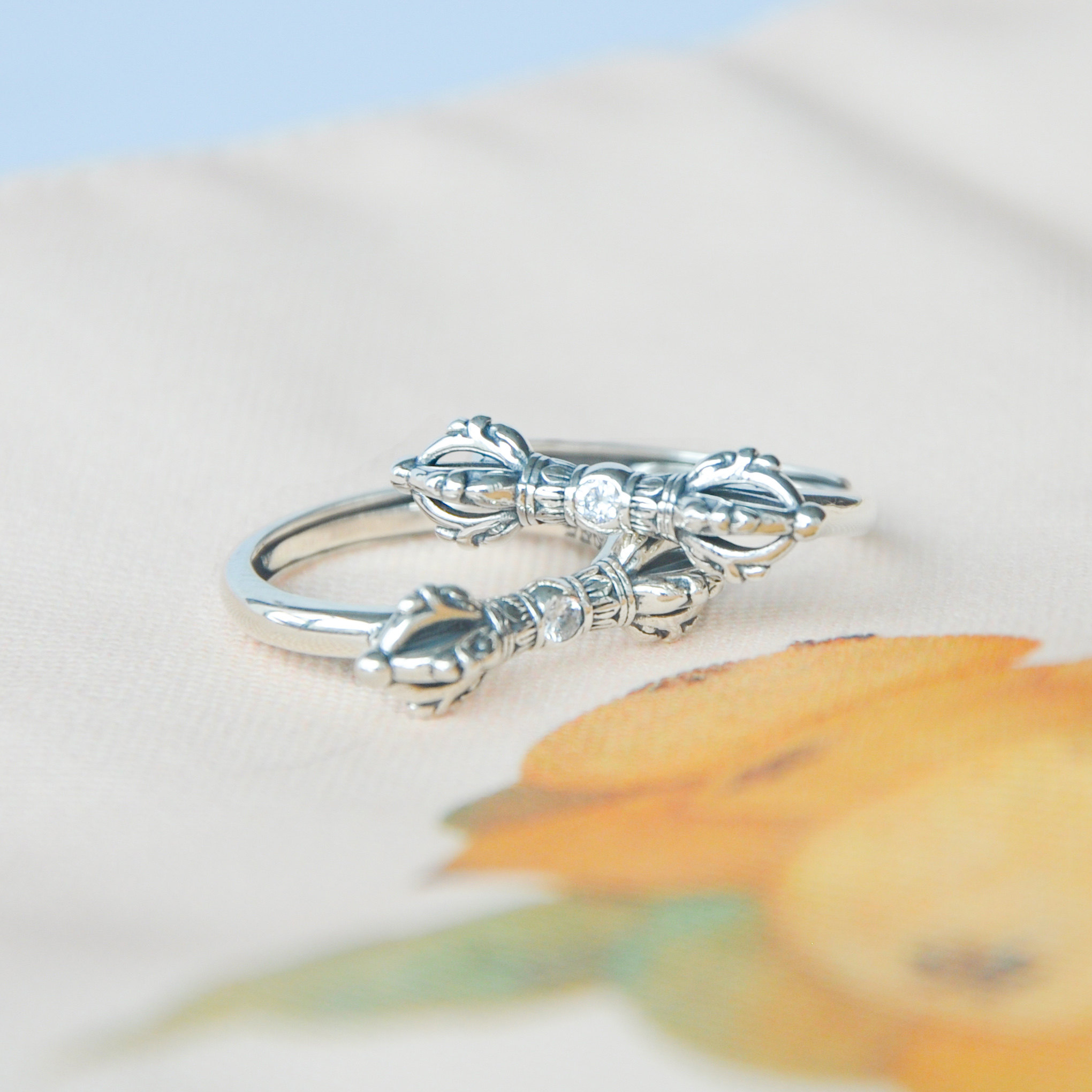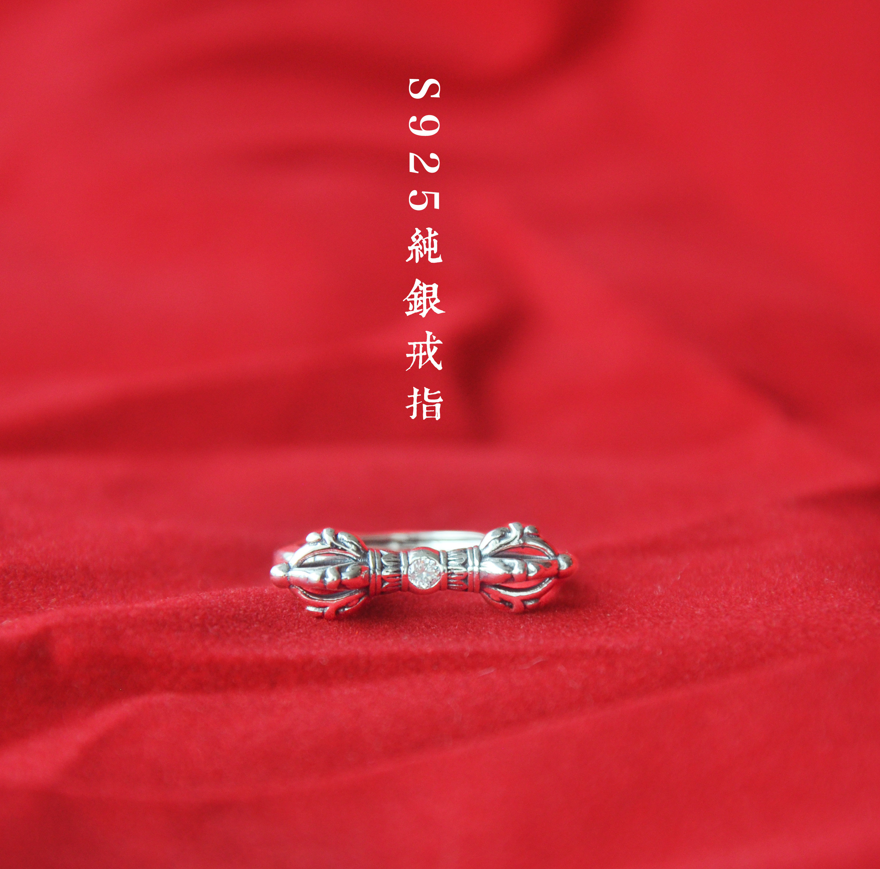 📚 普门庵金刚杵指环s925纯银男女藏式法器金刚降魔杵六道金刚戒指