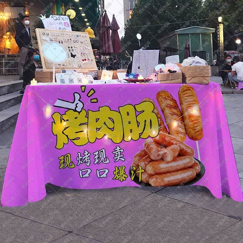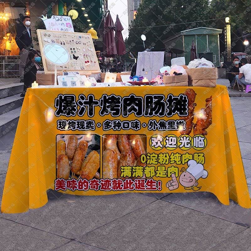 📚 火山石烤纯肉肠摆地摊广告桌布网红集市夜市移动小吃摊台布背景布
