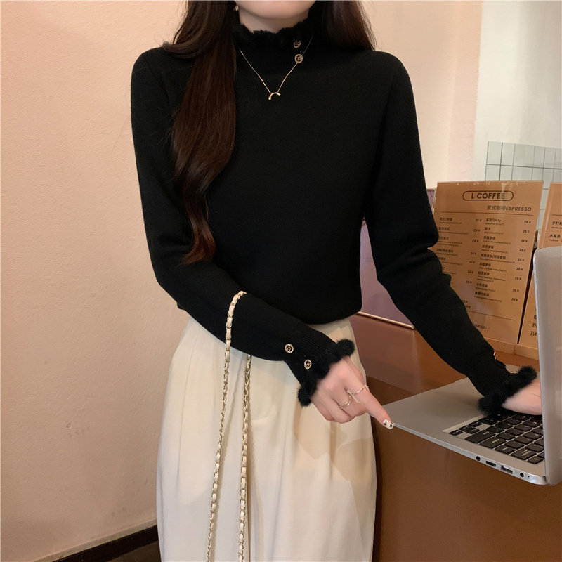 📚 加绒毛衣女保暖加厚一体绒内搭半高领打底衫秋冬高级感超好看上衣