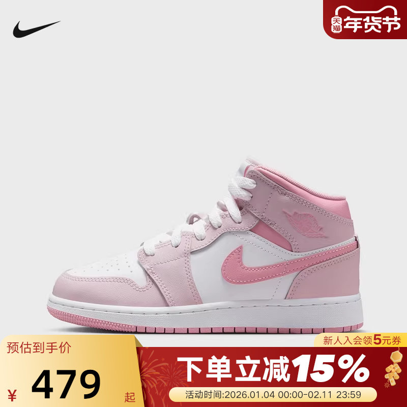📚 NIKE耐克女鞋AIR JORDAN 1 AJ1粉白中帮板鞋大童篮球鞋DQ8423-600