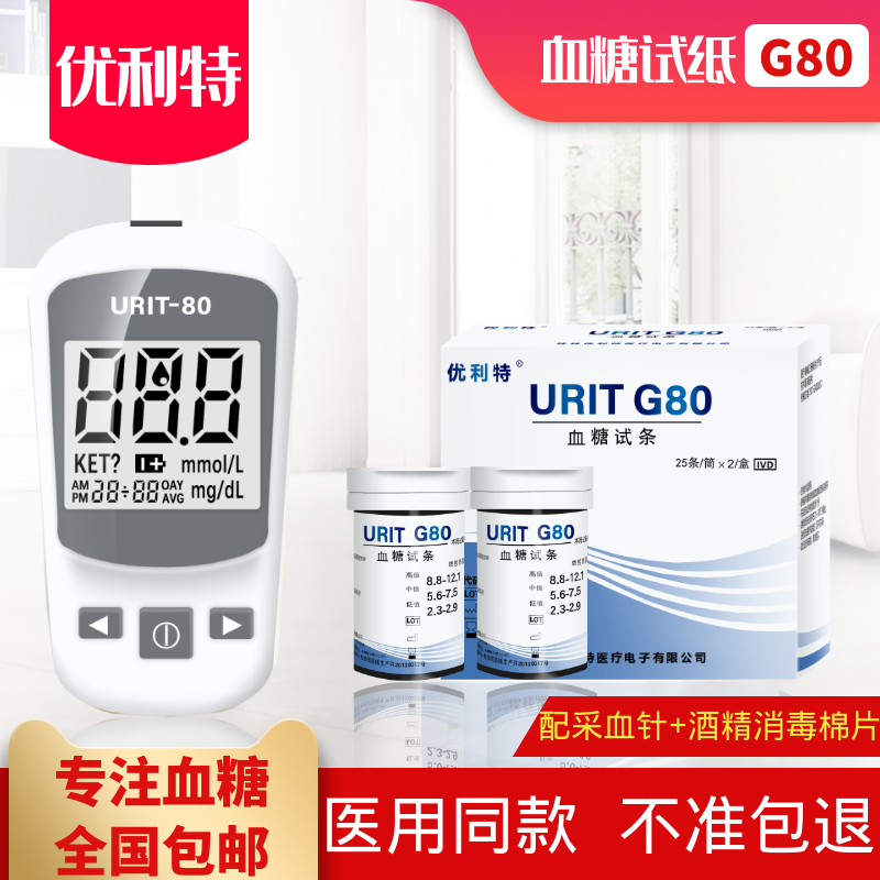 📚 优利特URIT-G80血糖试纸家用全自动血糖分析测试仪预防糖尿病正品