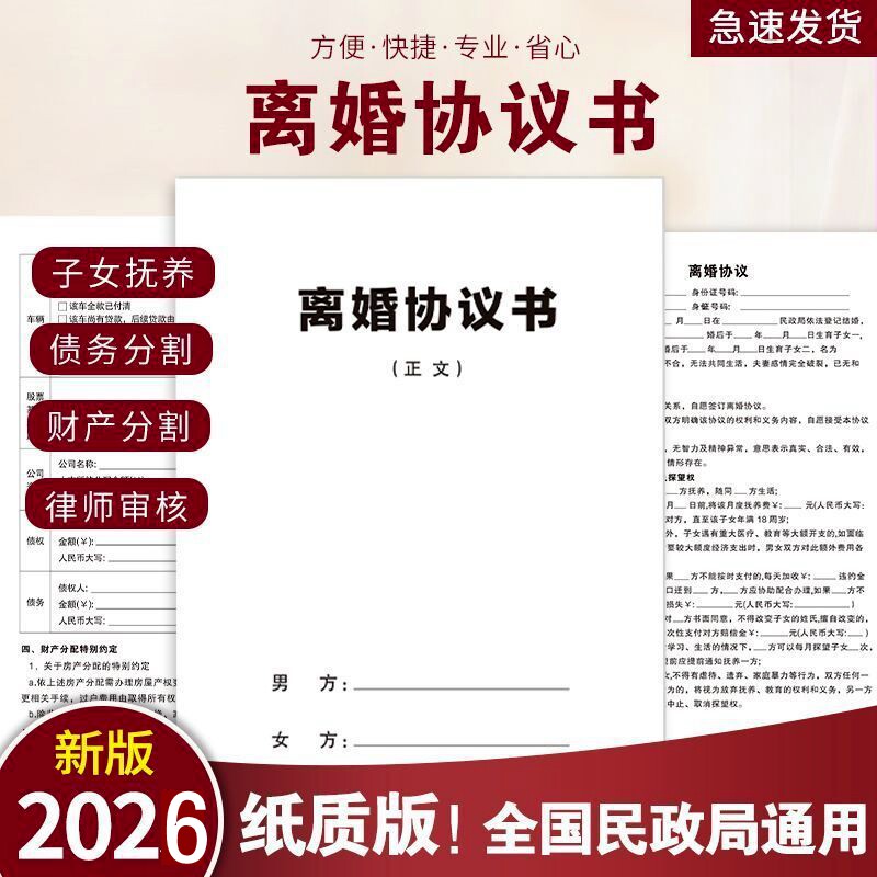 📚 26年新规律师出离婚协议书子女抚养财产划分纸质版通用打印单据