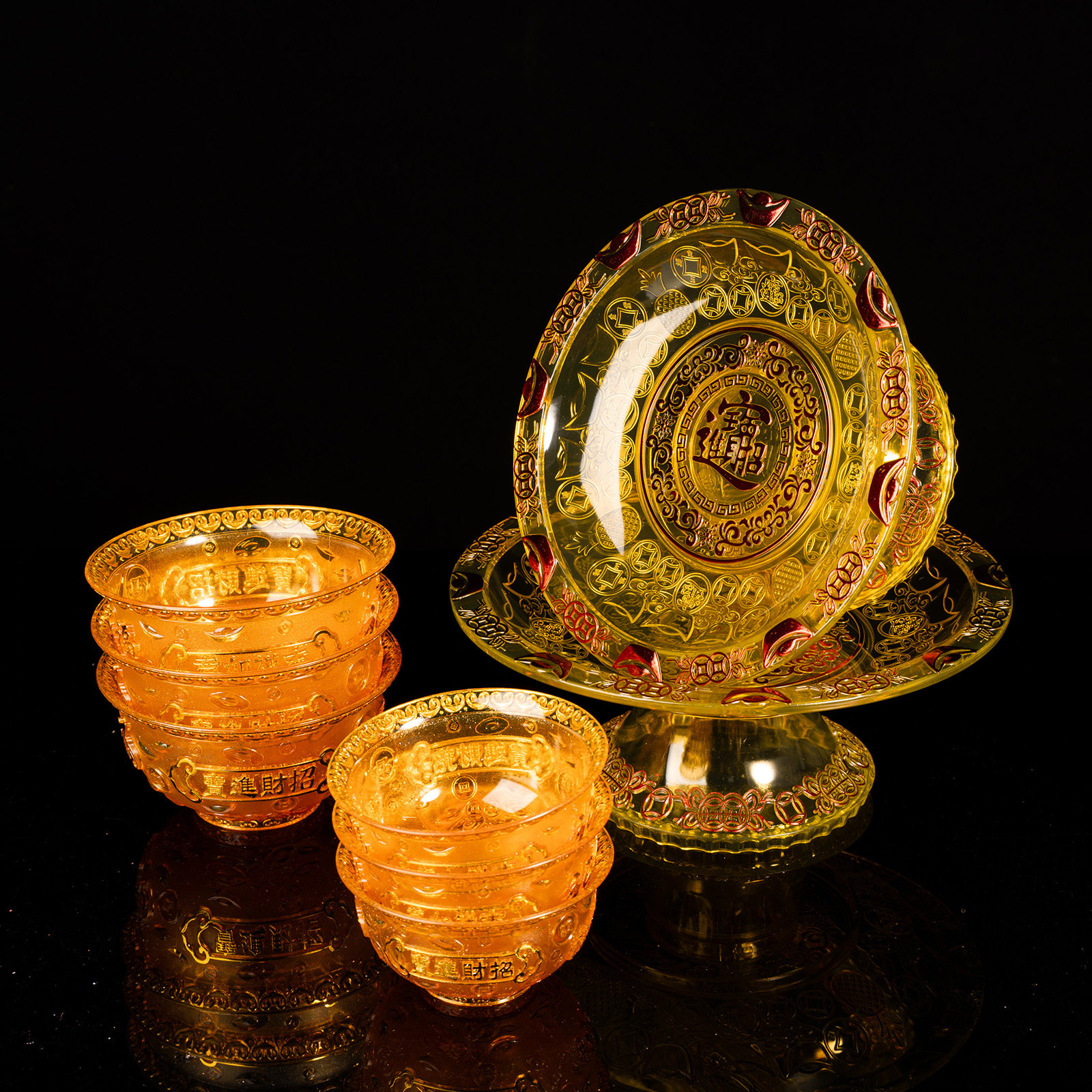 📚 家用供盘塑料黄色托盘贡盘供奉拜拜贡品盘供佛水果盘佛前供果果盘