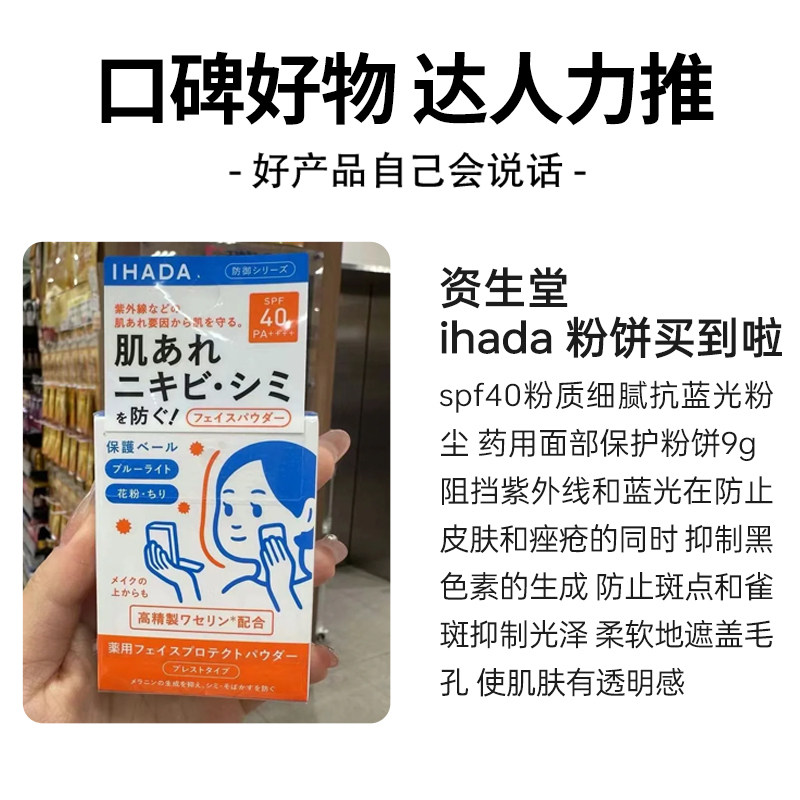 📚 保税仓日本资生堂IHADA防晒粉饼敏感肌持久控油定妆隐形毛孔 9g