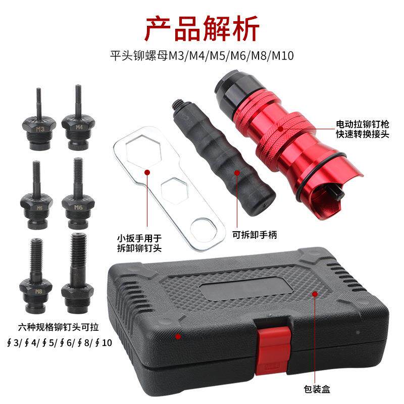 📚 电动铆拉钉枪钉拉铆抽芯卯转换头抢BKR钉拉枪头柳钉铝合金铆拉丁