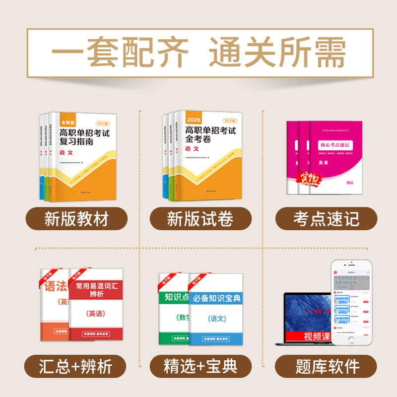 📚 四川高职高考复习资料2026年单招教材历年真题库模拟试卷语文数学英语复习指南备考26中职生对口升学考试试题金考卷春招2025普高