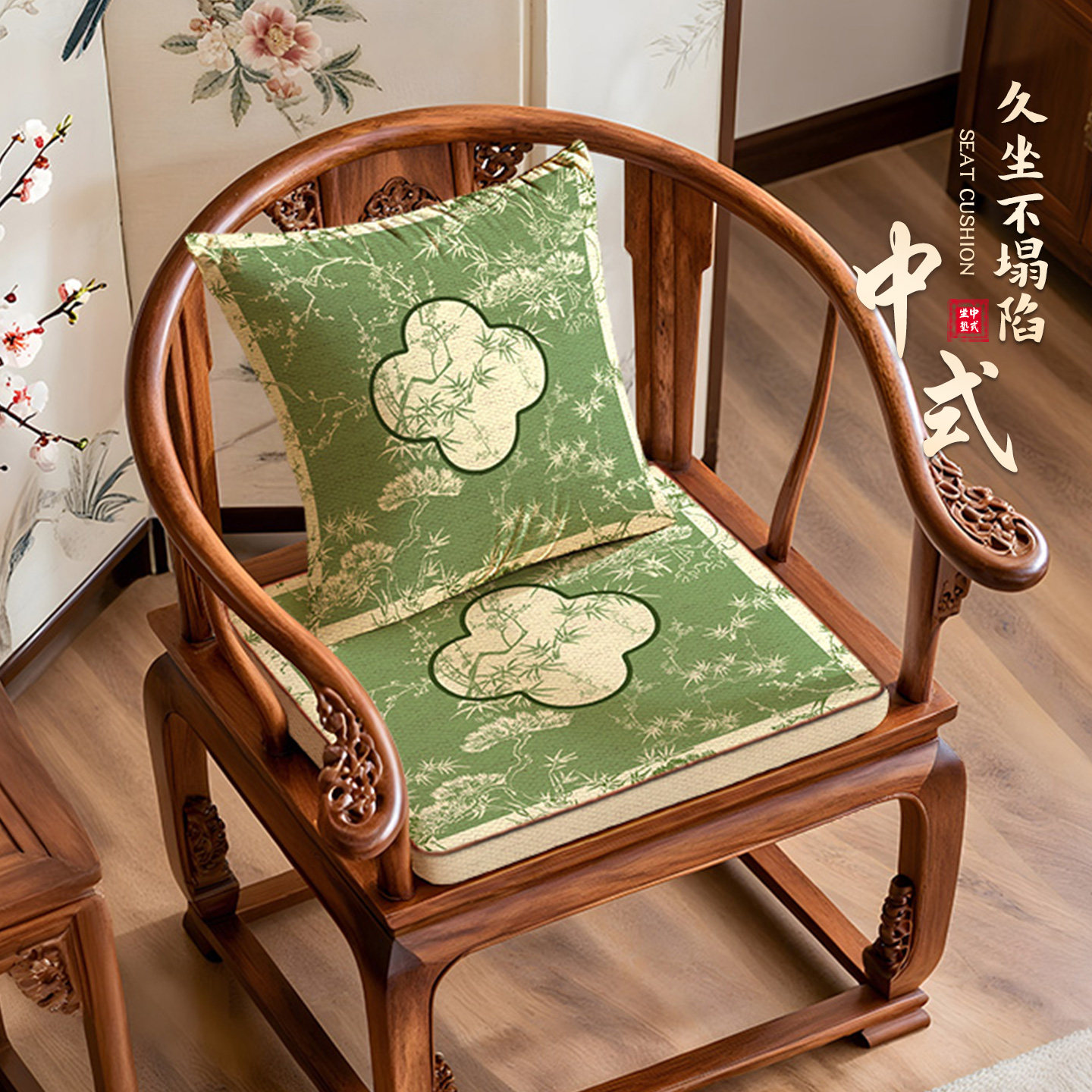 📚 新中式茶桌垫子海绵棉麻椅垫椅垫坐垫防滑太师椅配件主人椅垫子