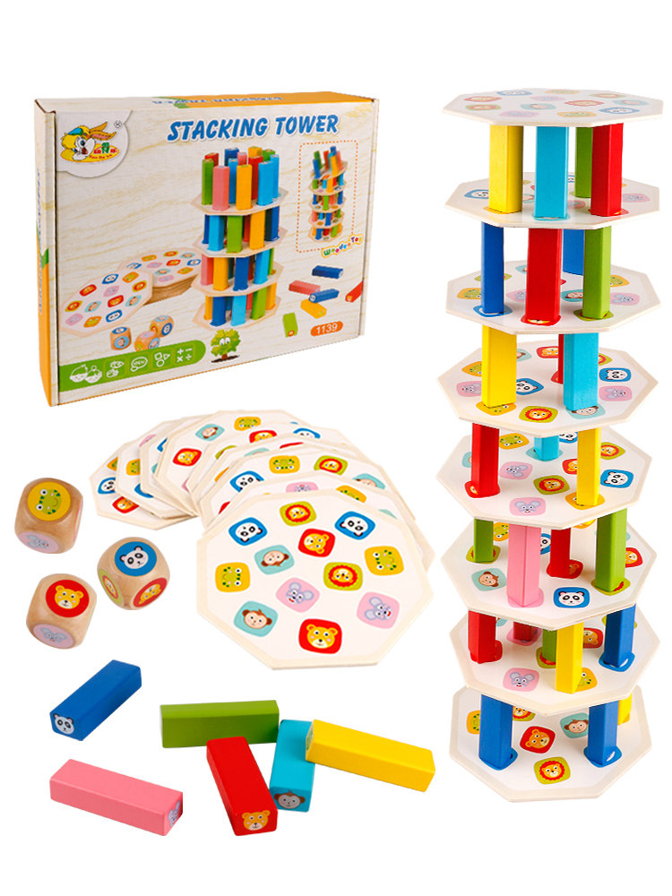 📚 幼儿园建构区桌面游戏叠叠高积木儿童男女宝拼搭木制益智区域玩具