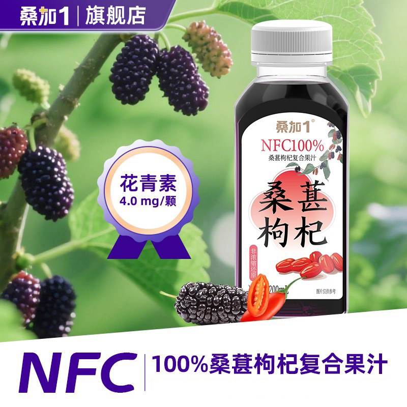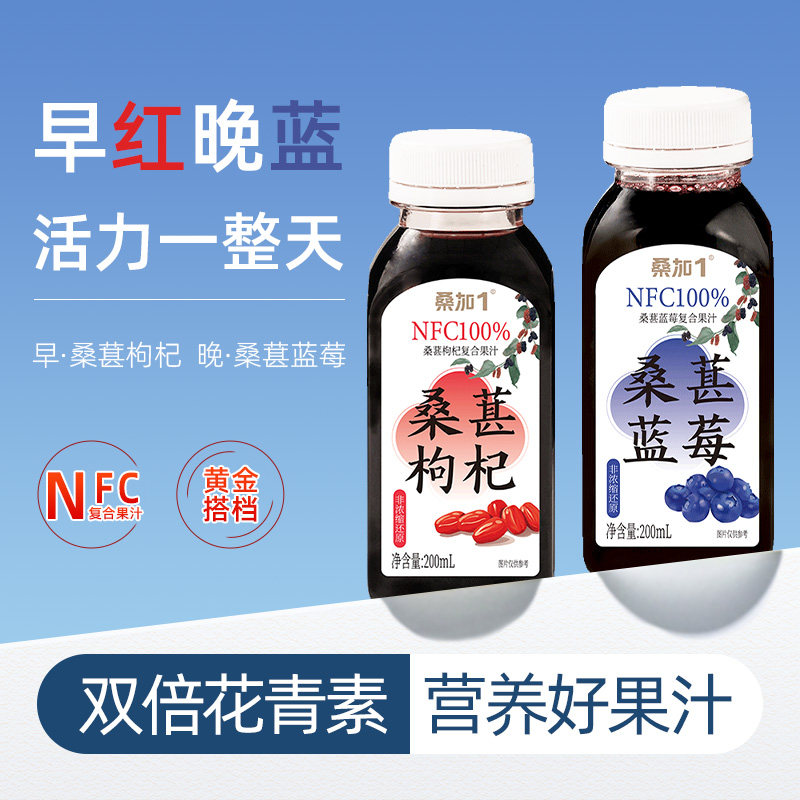 📚 桑加1 NFC100%蓝莓&枸杞复合桑葚汁花青素桑果汁果蔬汁原浆200ml