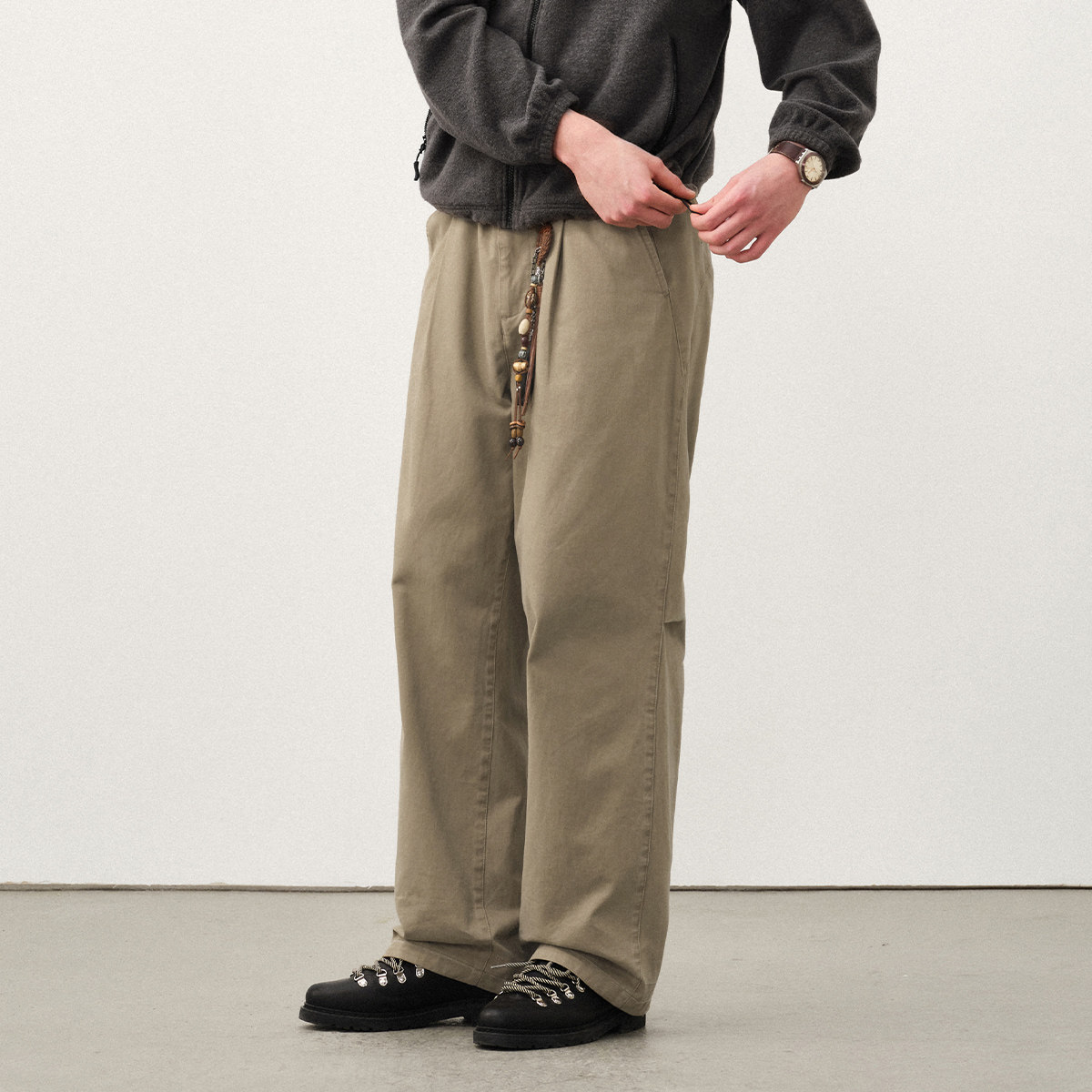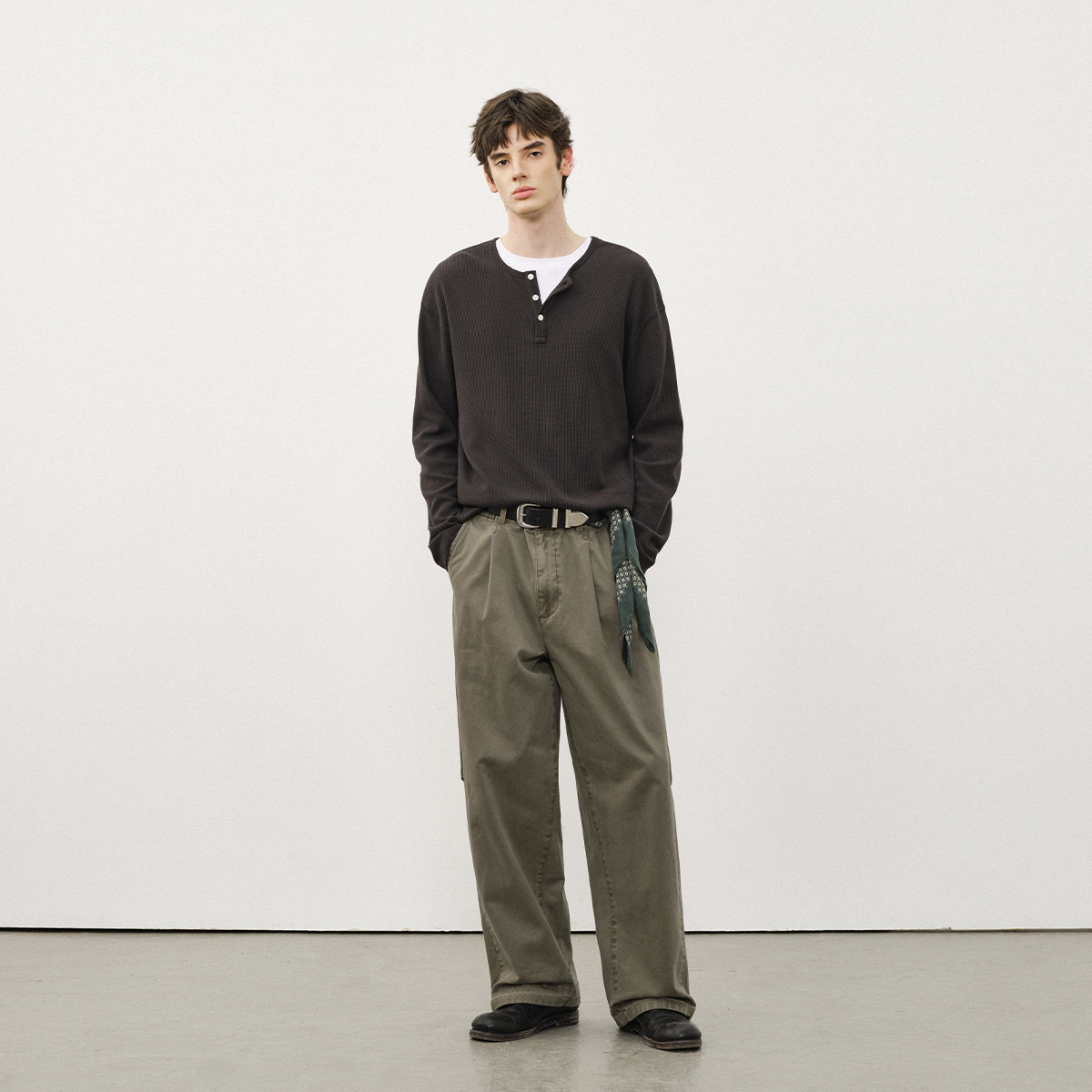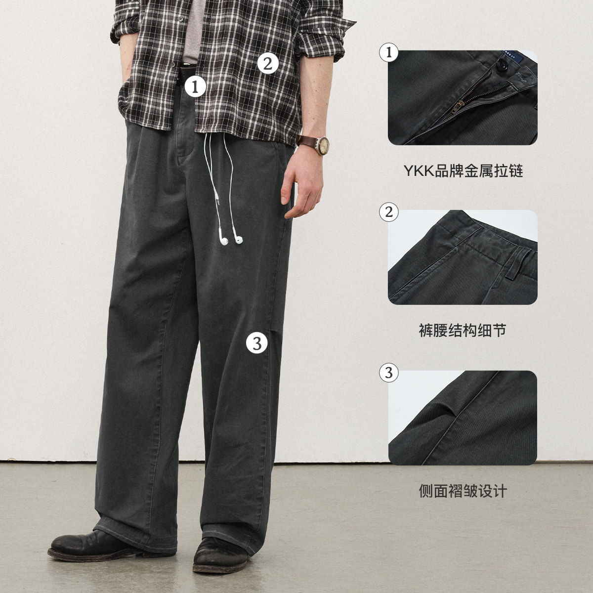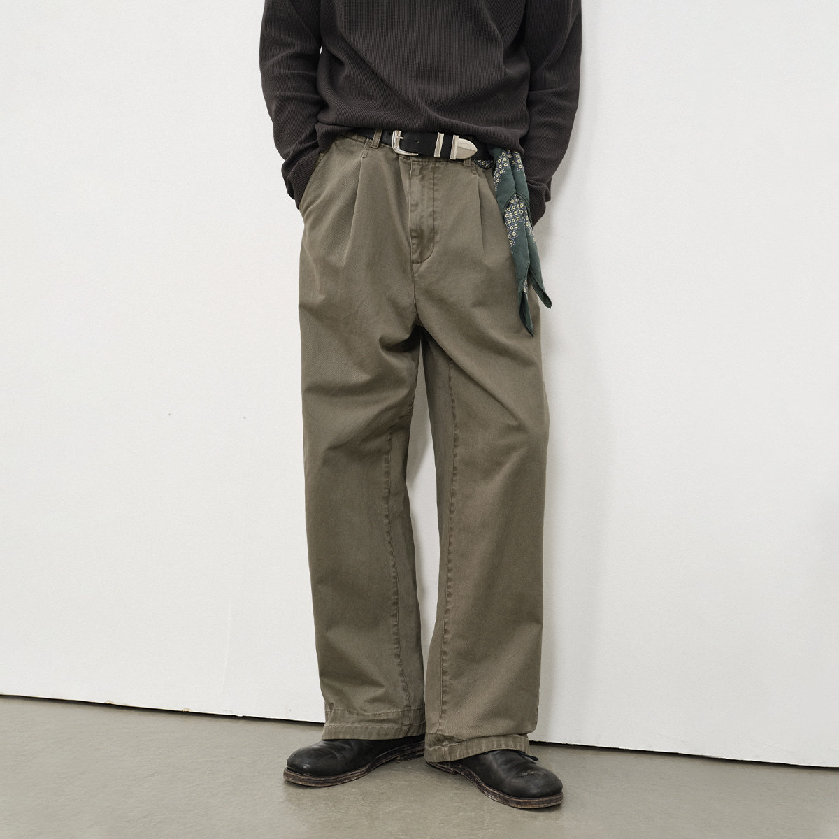 📚 714street复古水洗弧线打褶直筒长裤25秋季做旧cleanfit休闲裤男