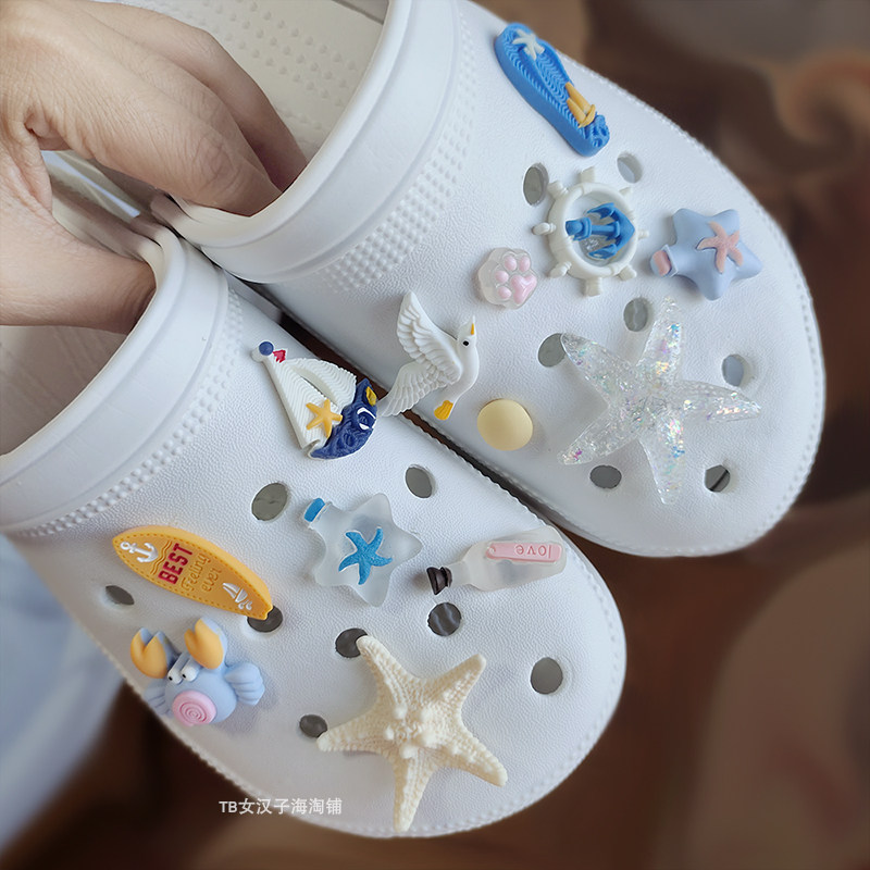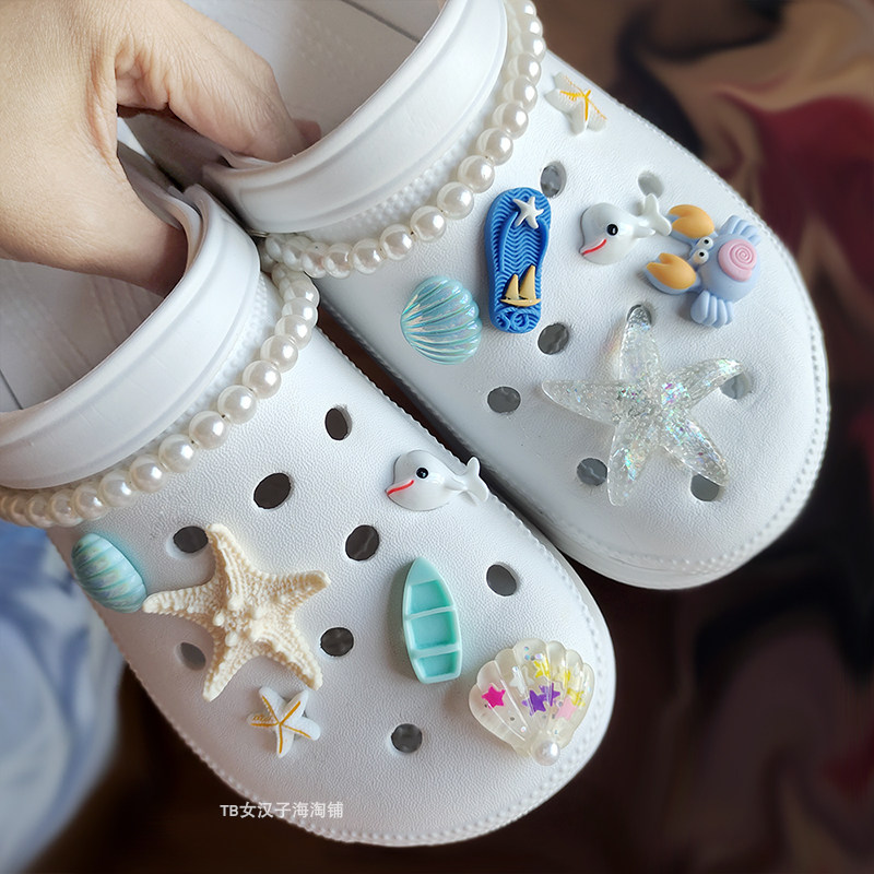 📚 适配卡骆驰洞洞鞋配饰diy海洋星星珍珠cross拖鞋男装饰扣配件可爱