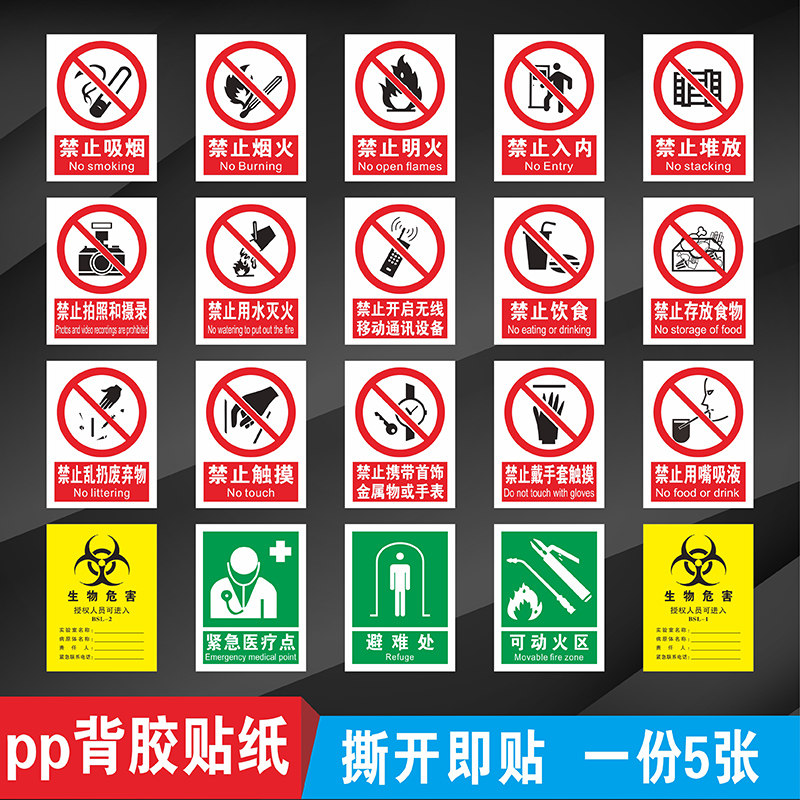 📚 实验室标识全套生物危害一级二级生物化学实验室安全警示提示牌