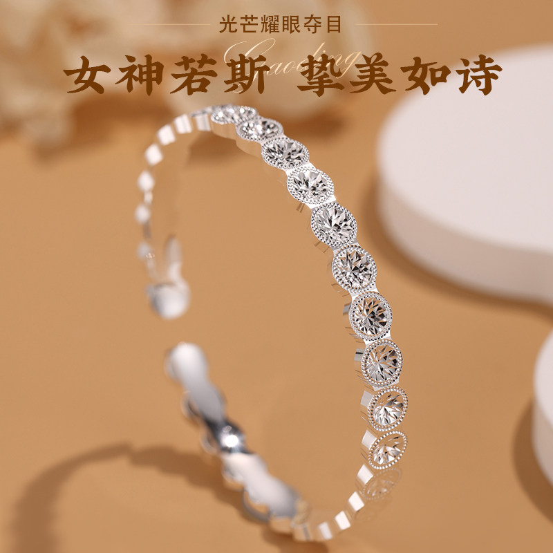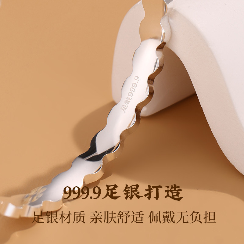 📚 【志同珠宝】足银实心圆盘手镯女小众设计感开口银镯百搭时尚手饰