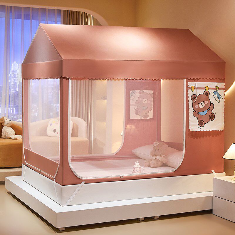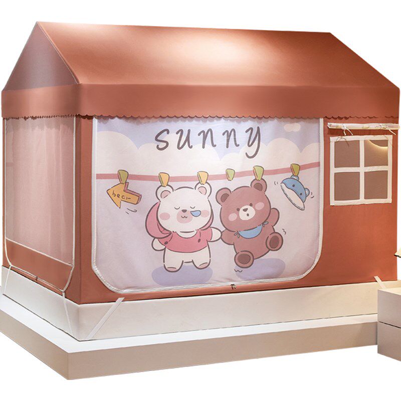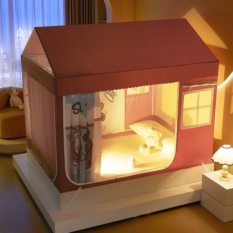 📚 儿童尖顶小房子遮光床帘全封闭蚊帐男孩床棚罩帐篷全包型*