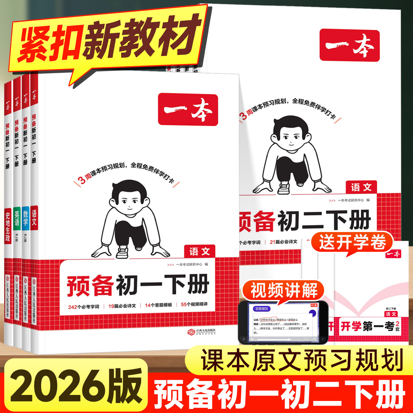 📚 2026版一本预备初一初二下册寒假版七八年级初中语文数学英语小四门物理人教版领跑新初二一下学期寒假衔接教材作业预习复习练习册