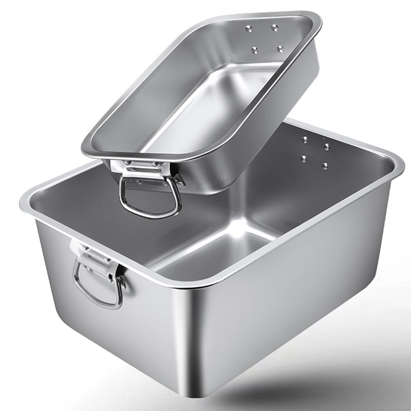 📚 304不锈钢长方形方盘自助餐份数盆加深托盘快餐菜盆带盖保温台盆