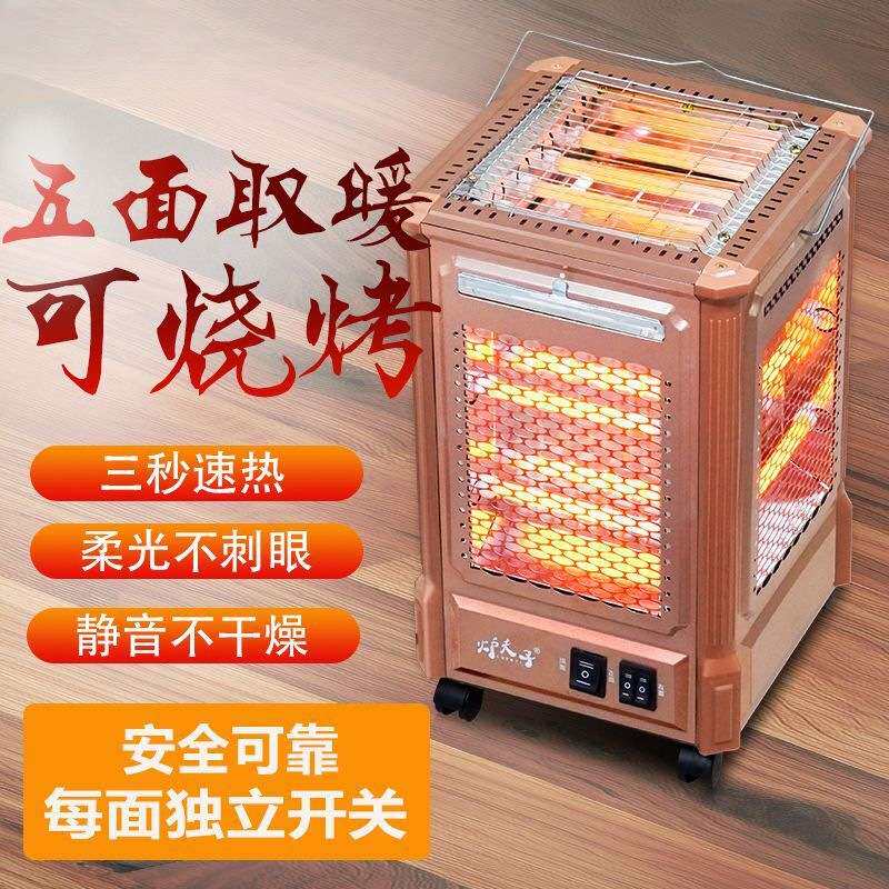 📚 五面取暖器烤火炉家用插电取暖炉烤火器起暖气电烤炉取暖两用商用