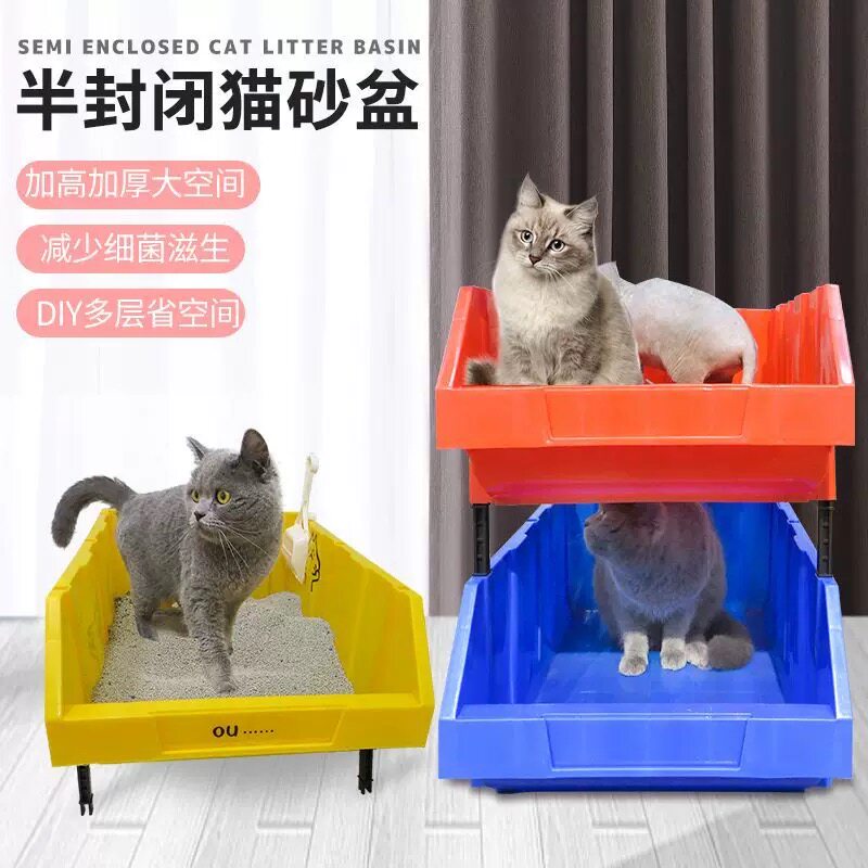 📚 周转箱猫砂盆斜口工具箱集装箱猫砂盆零件盒巨大号超大号物流箱