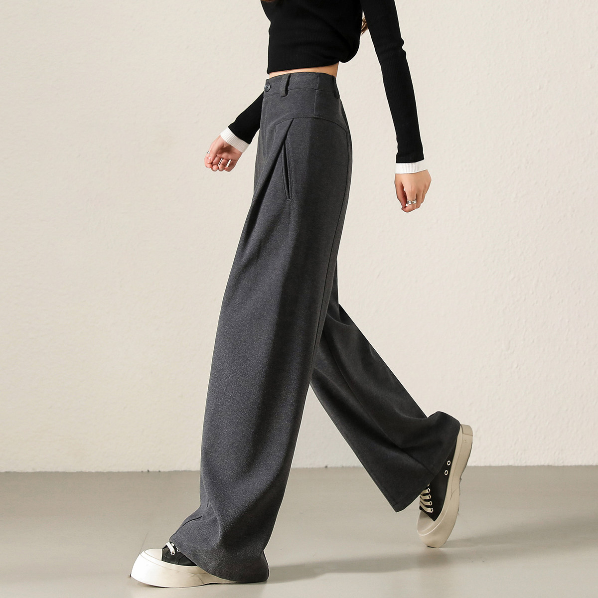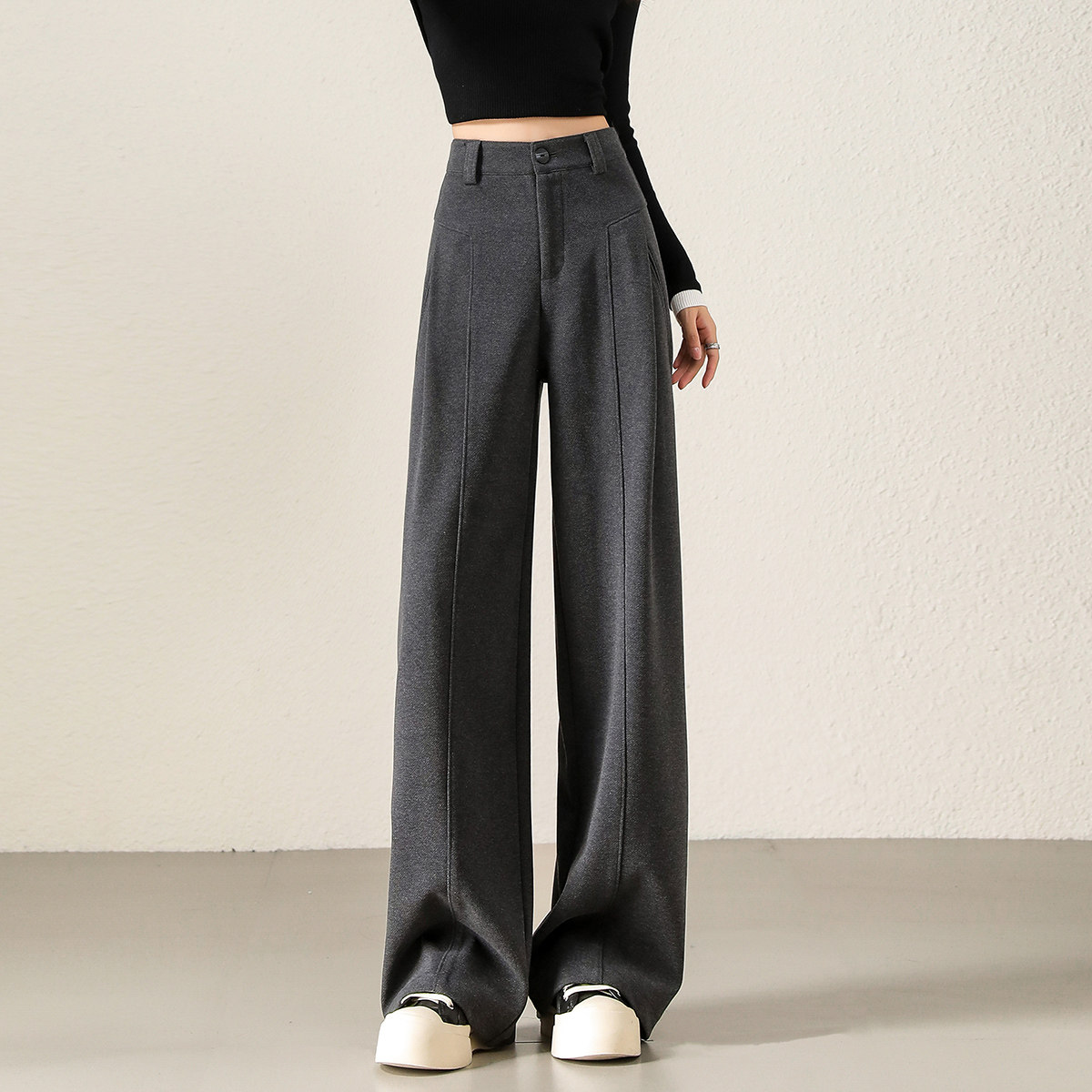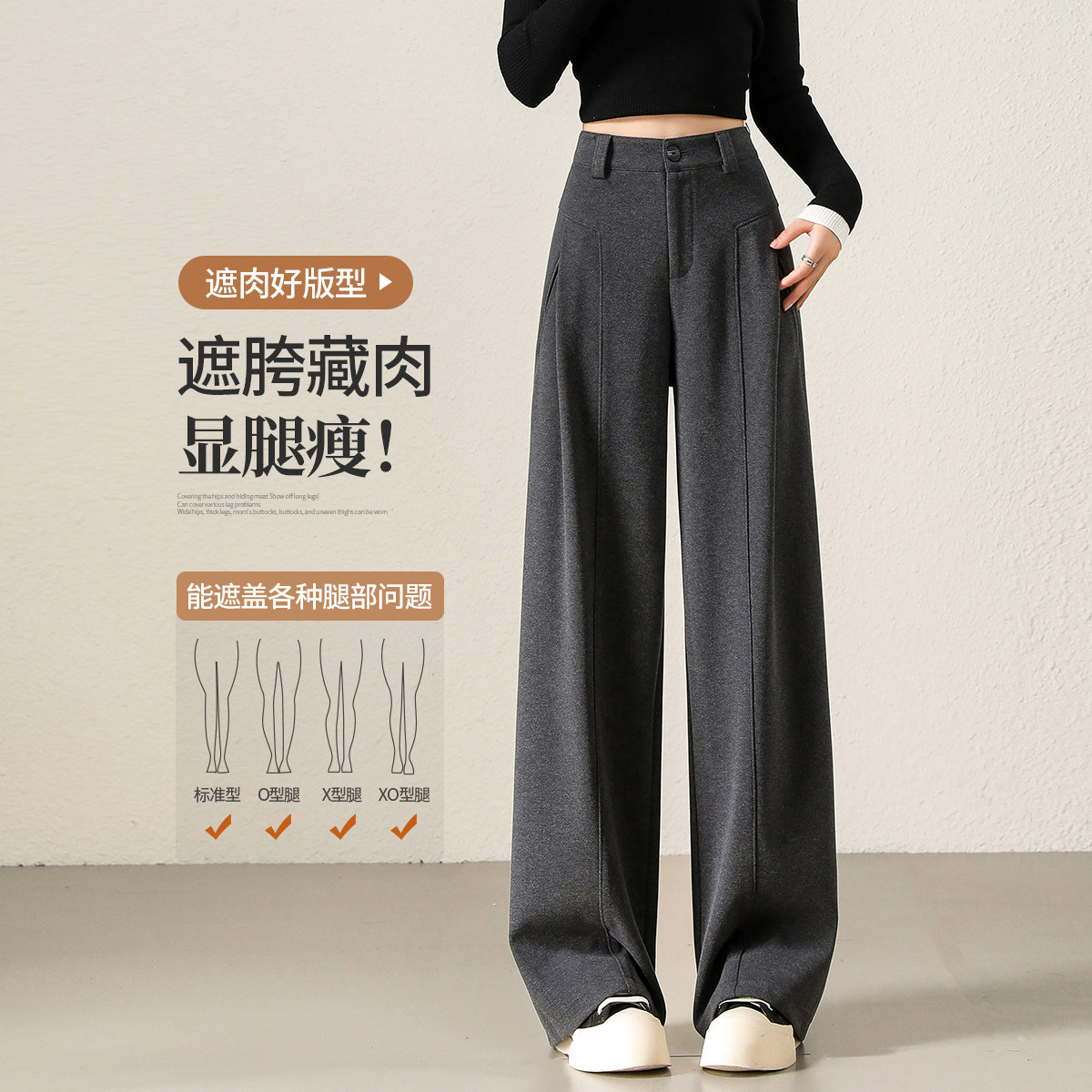 📚 风琴裤女冬季新款加厚直筒裤灰色休闲裤老钱风女款加绒阔腿长裤子
